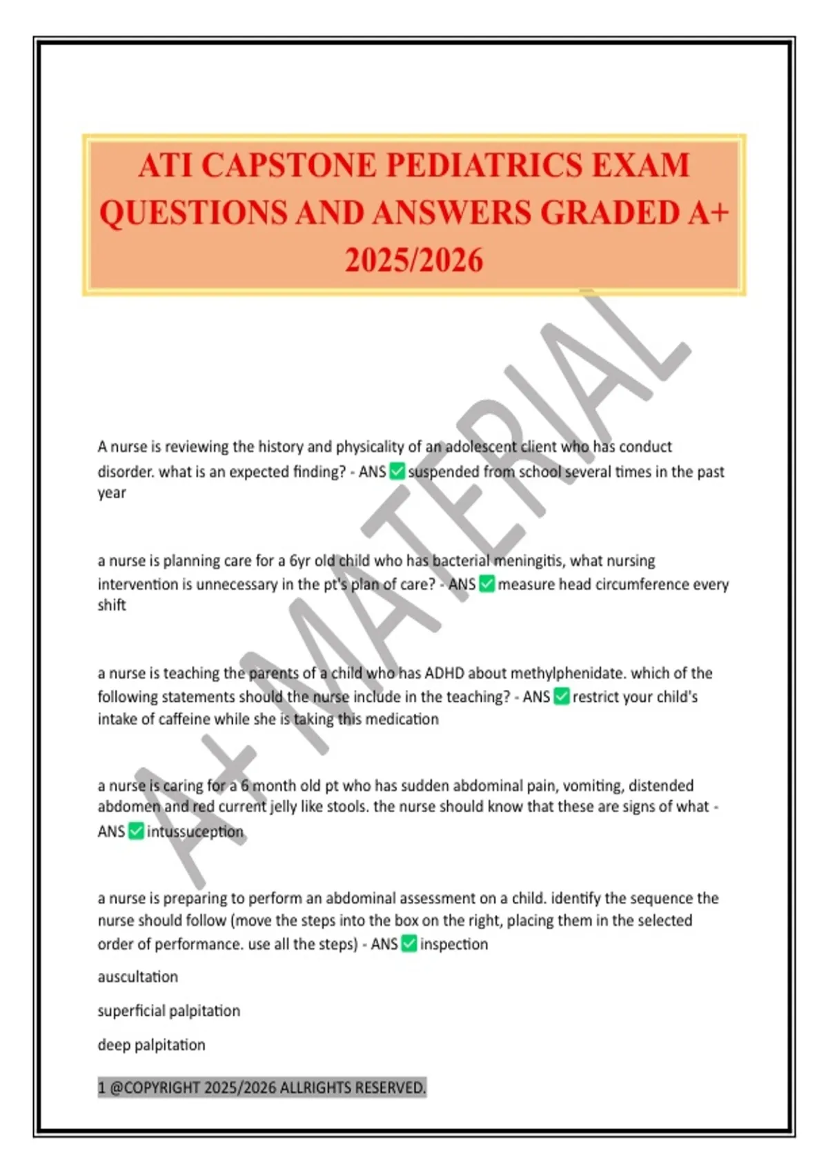 ATI CAPSTONE PEDIATRICS EXAM