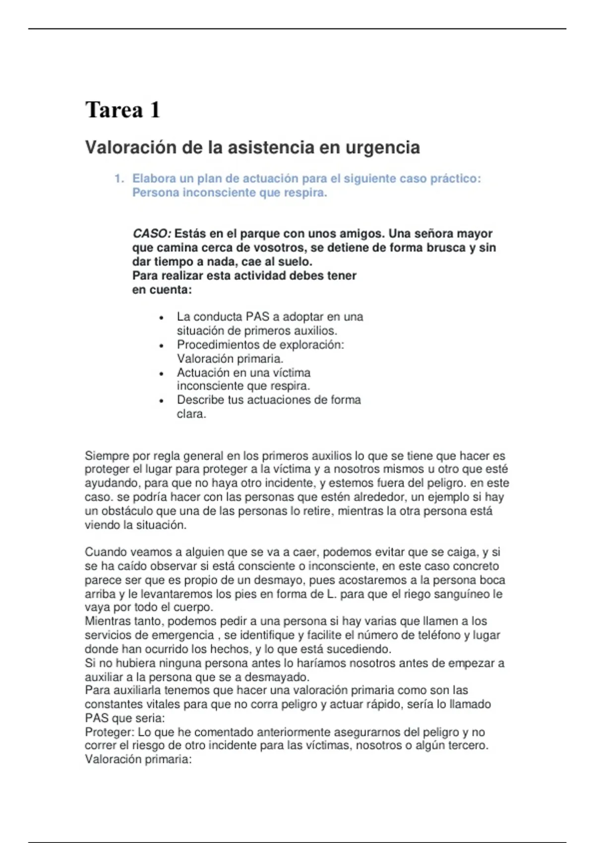 Para auxiliarla tenemos que hacer una valoración primaria como son las