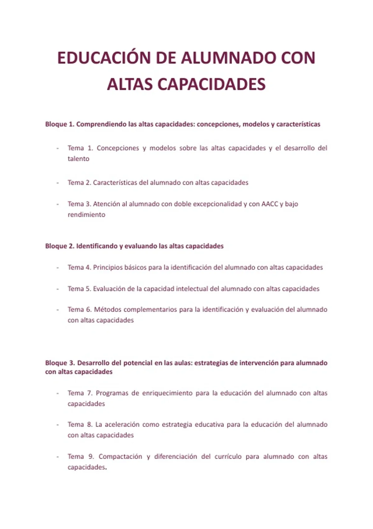 - Tema 7. Programas de enriquecimiento para la educación del alumnado con altas