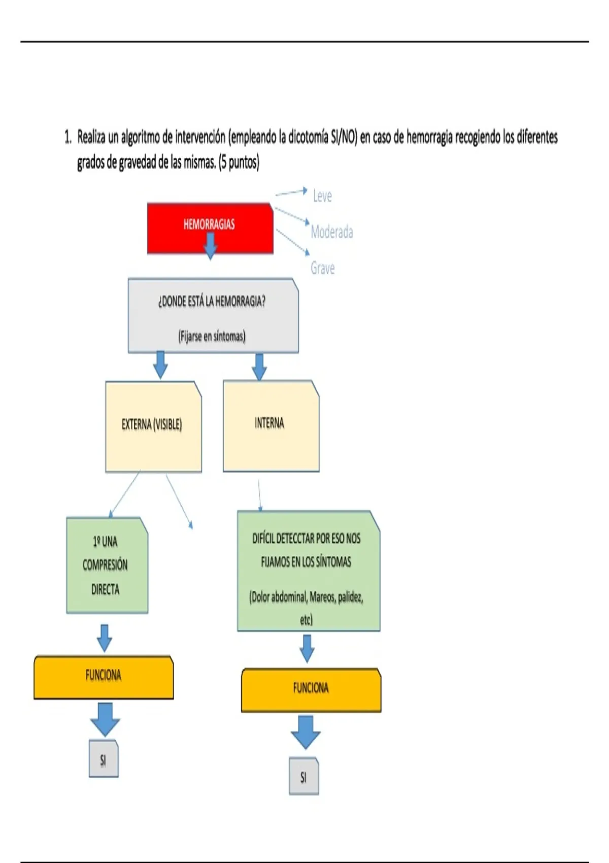 1. Realiza un algoritmo de intervención (empleando la dicotomía SI/NO) en caso de hemorragia recogiendo los diferentes