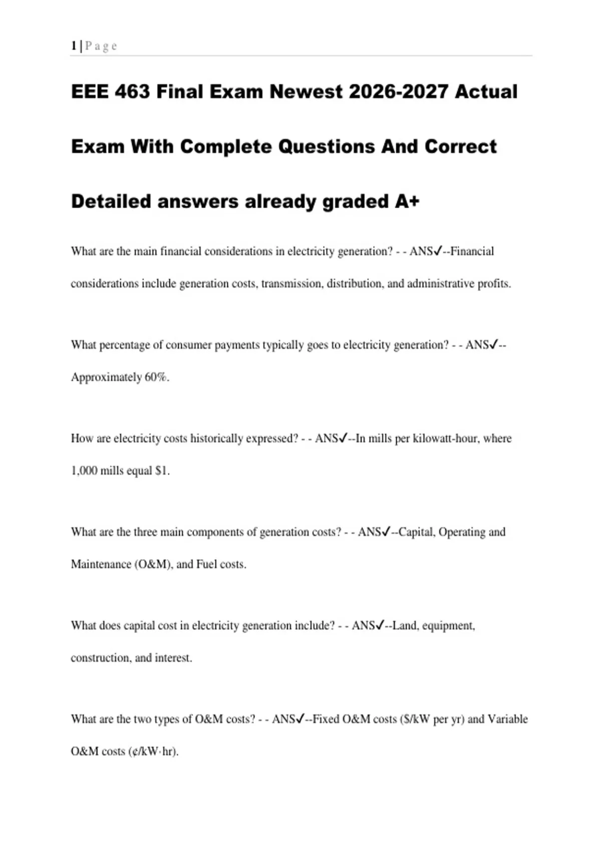 EEE 463 Final Exam Newest Actual Exam With Complete Questions And Correct Detailed answers already graded A+