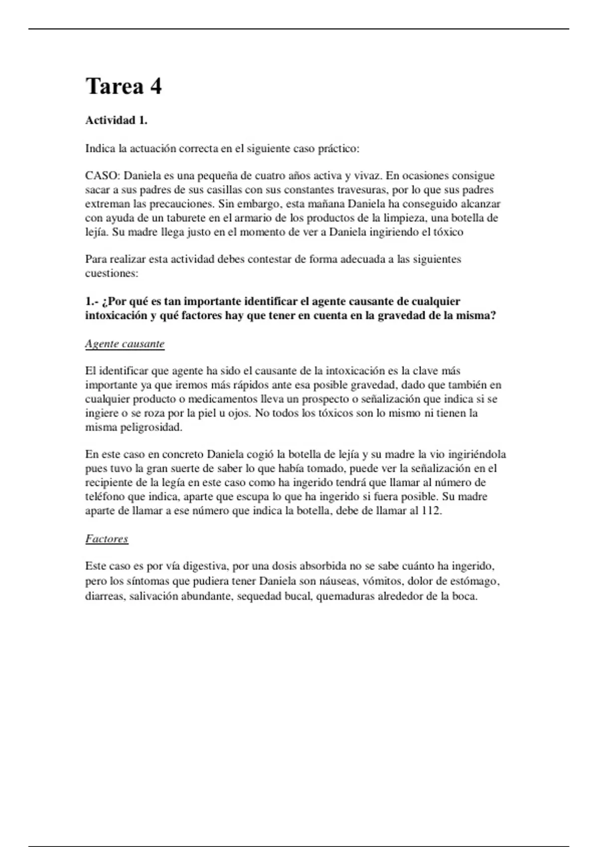 En este caso en concreto Daniela cogió la botella de lejía y su madre la vio ingiriéndola