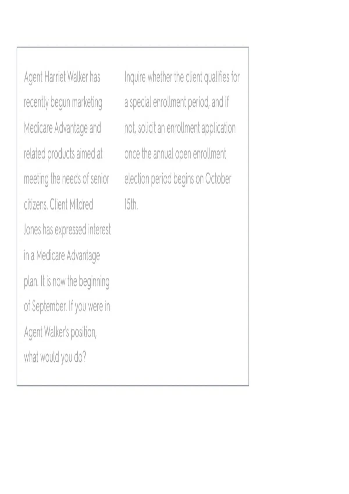 Agent Harriet Walker has Inquire whether the client qualifies for
