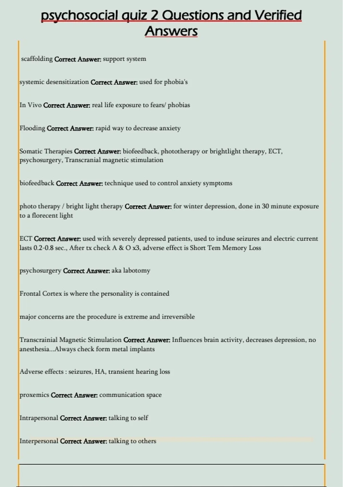 psychosocial quiz 2 Questions and Verified Answers