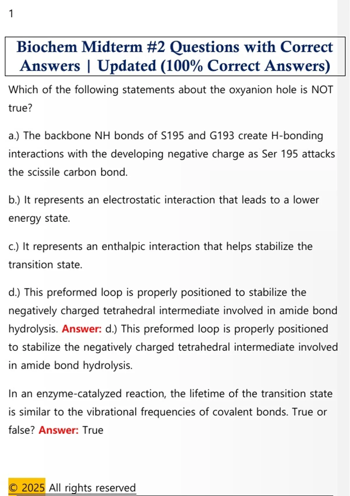 hydrolysis. Answer: d.) This preformed loop is properly positioned