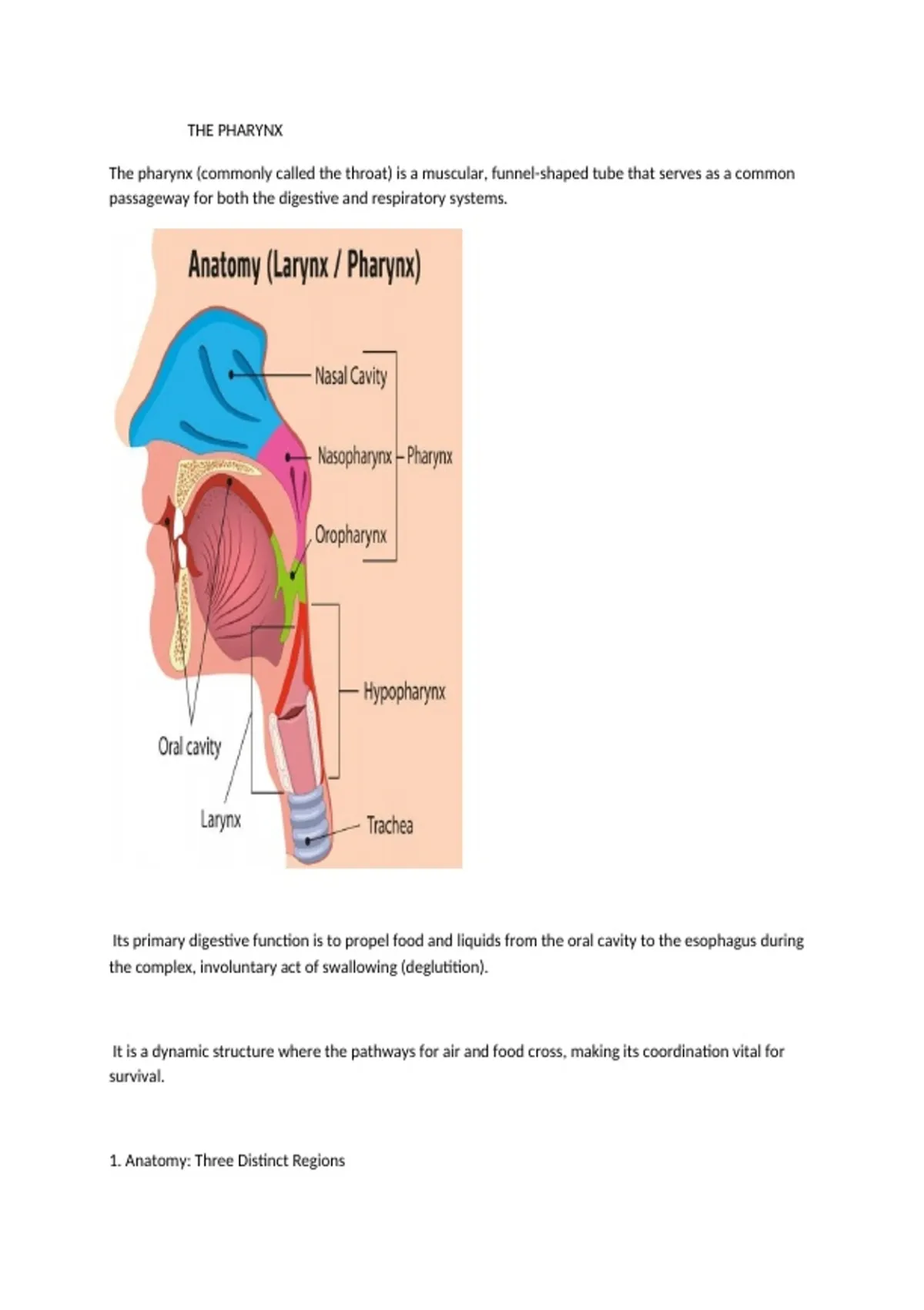 · c. Laryngopharynx (Hypopharynx): Extends from the tip of thew epiglottis to the level of the cricoid