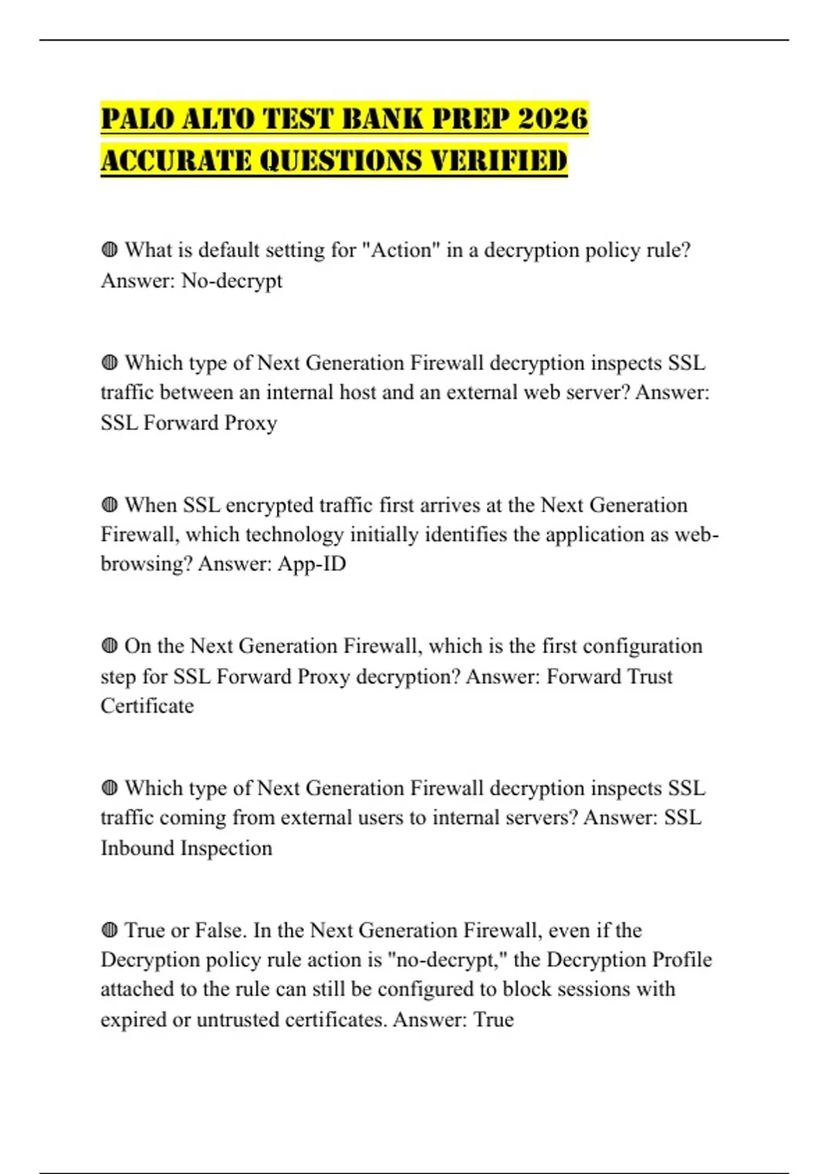 ◍ Which type of Next Generation Firewall decryption inspects SSL