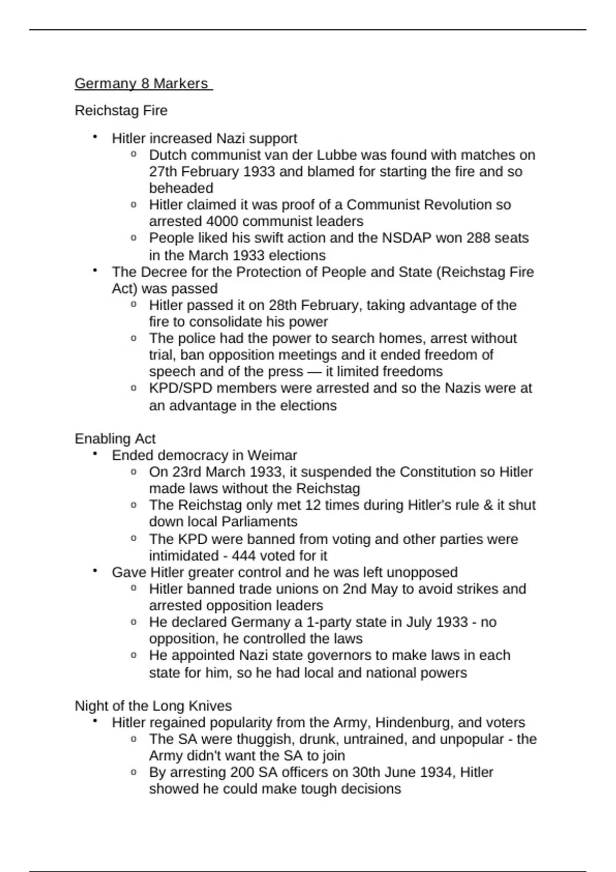 o By arresting 200 SA officers on 30th June 1934, Hitler