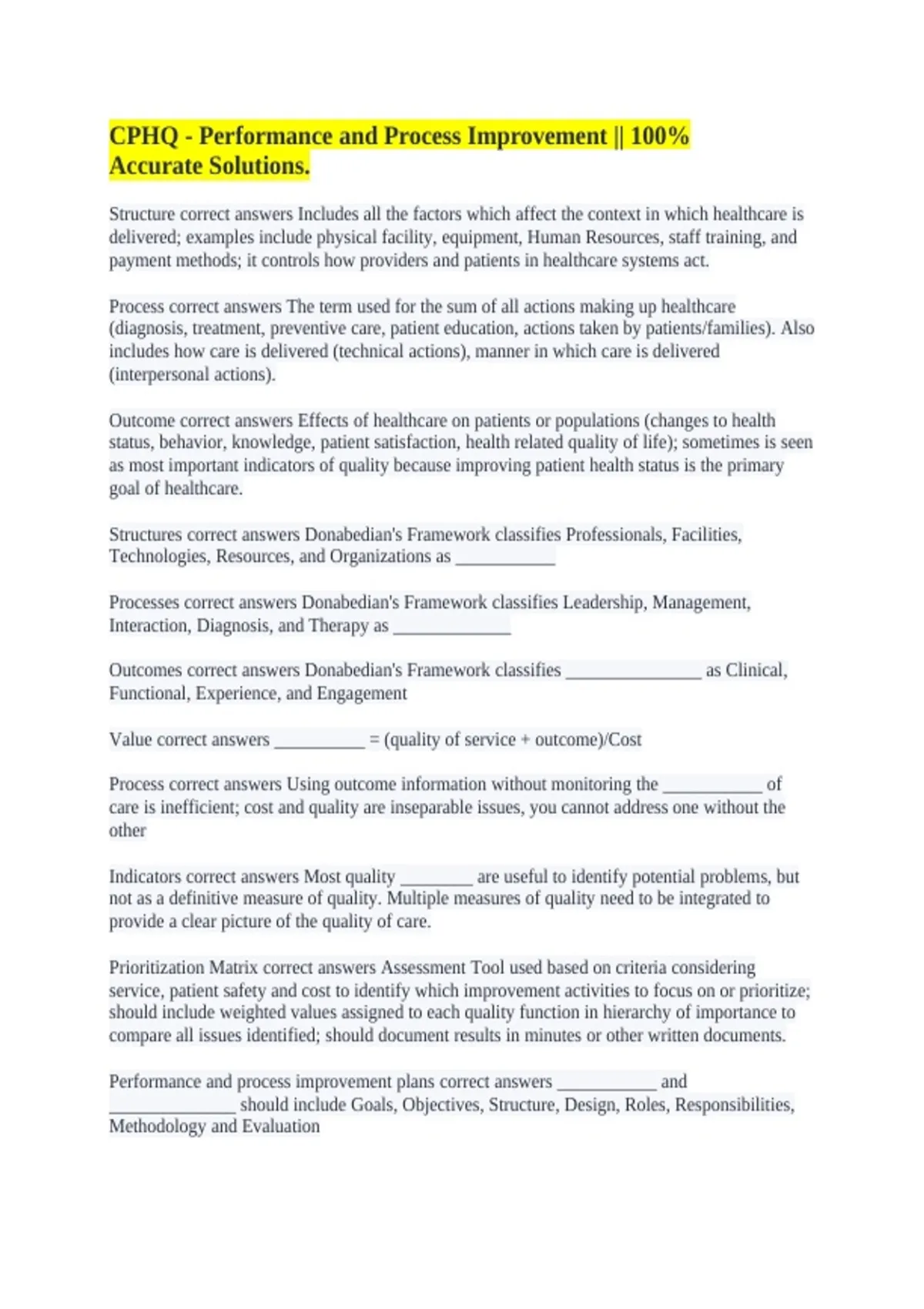 CPHQ - Performance and Process Improvement || 100% Accurate Solutions.