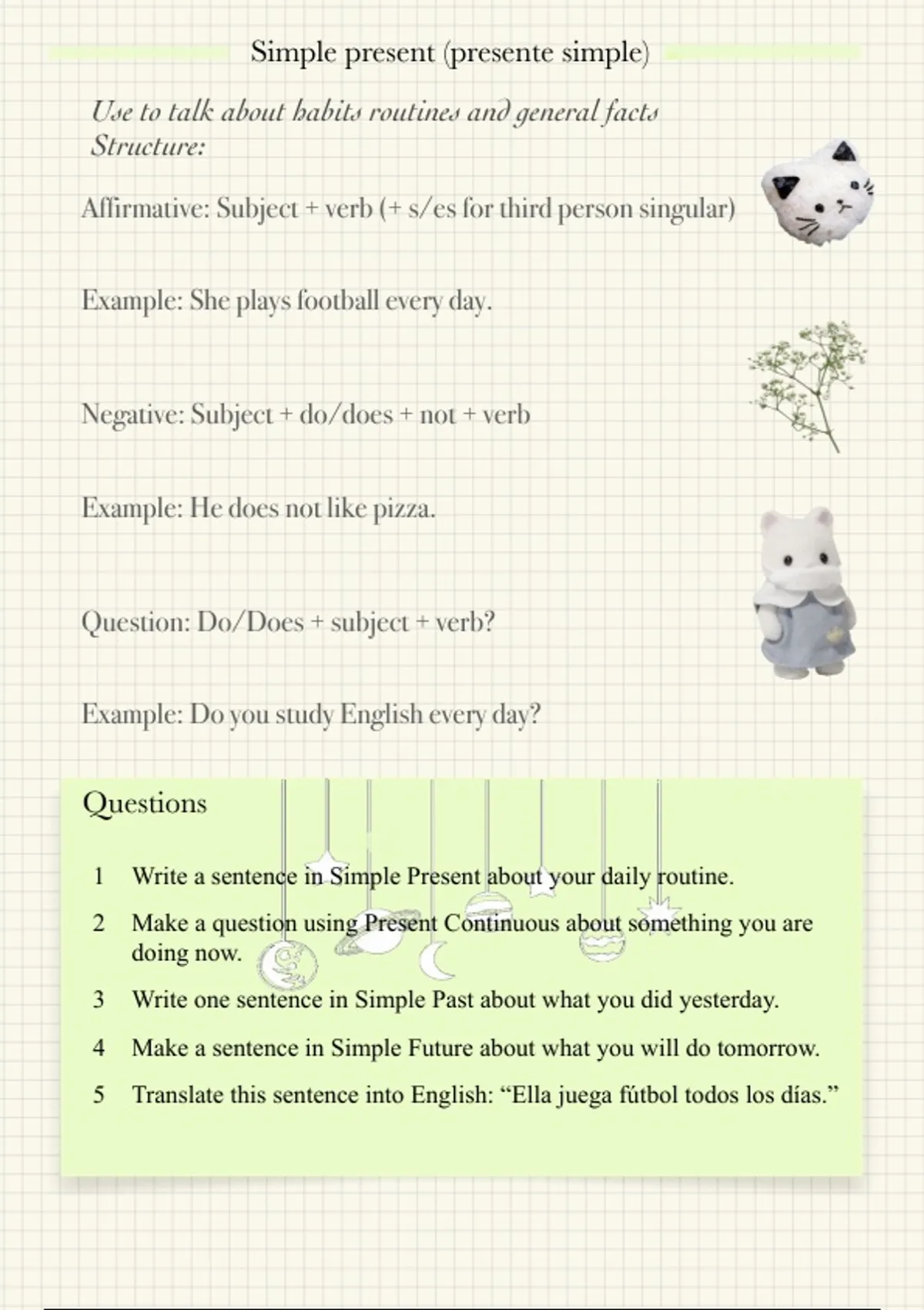 1 Write a sentence in Simple Present about your daily routine.