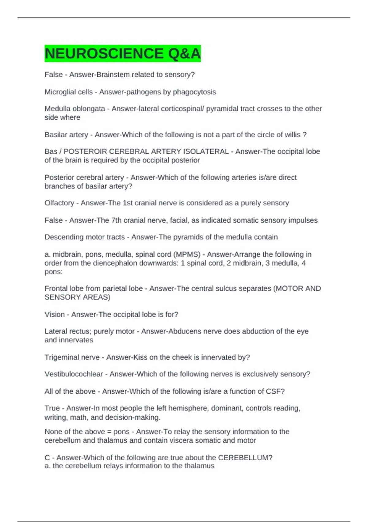 C - Answer-Which of the following are true about the CEREBELLUM?