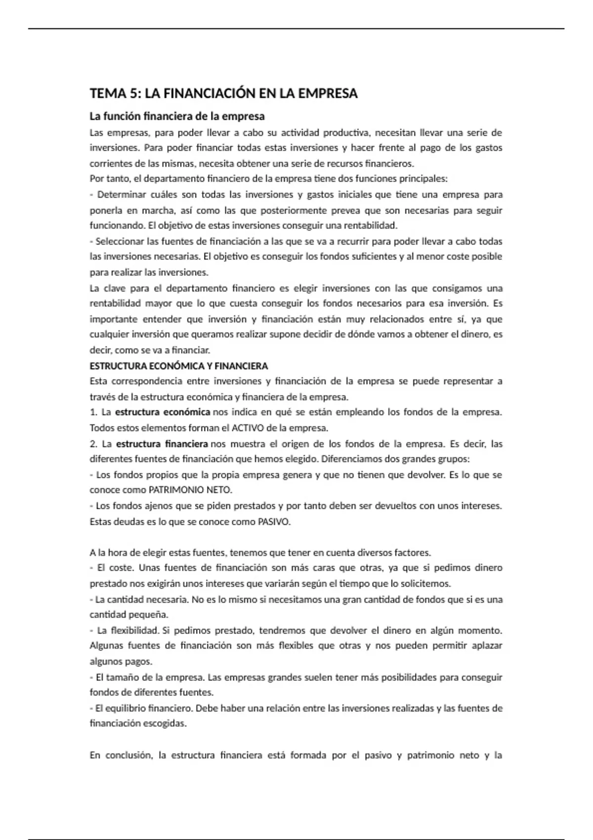 TEMA 5: LA FINANCIACIÓN EN LA EMPRESA