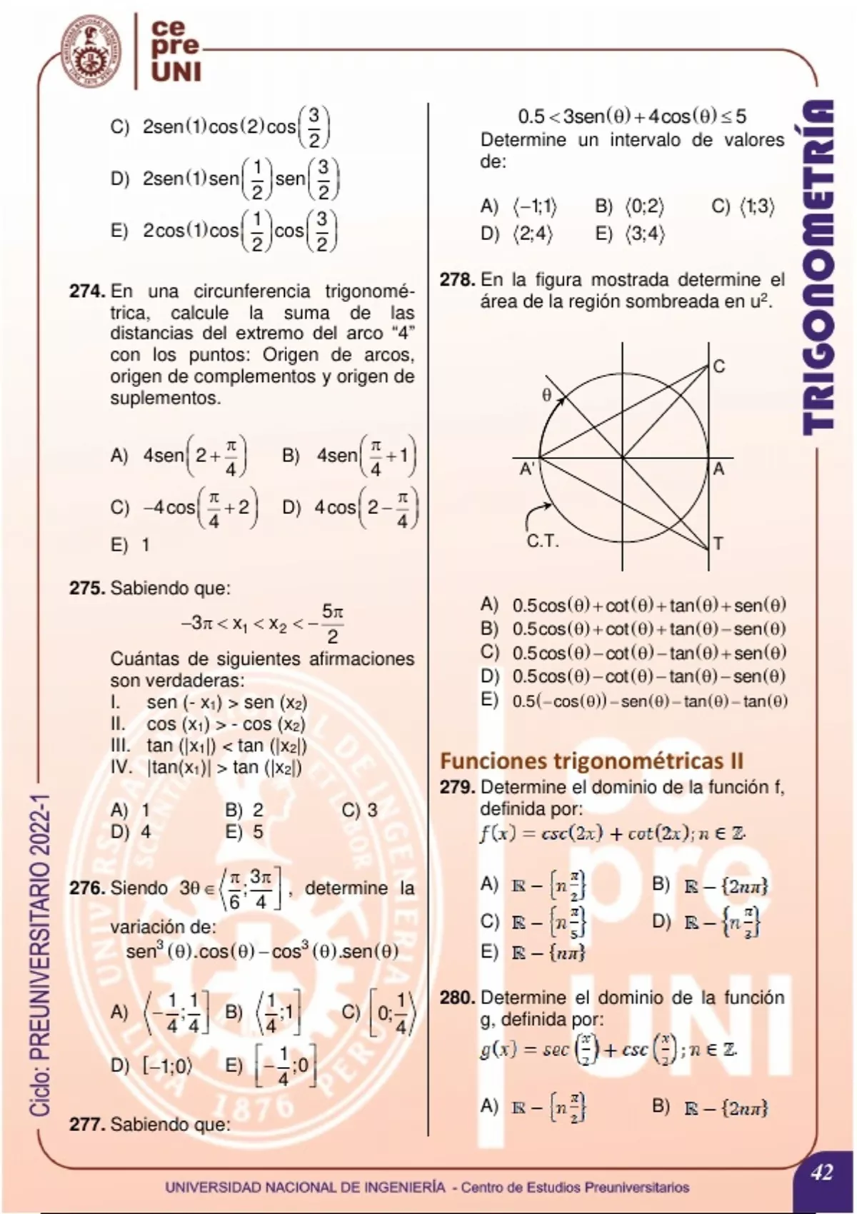 I. sen (- x1) > sen (x2) E) 0.5   cos    sen    tan    tan  