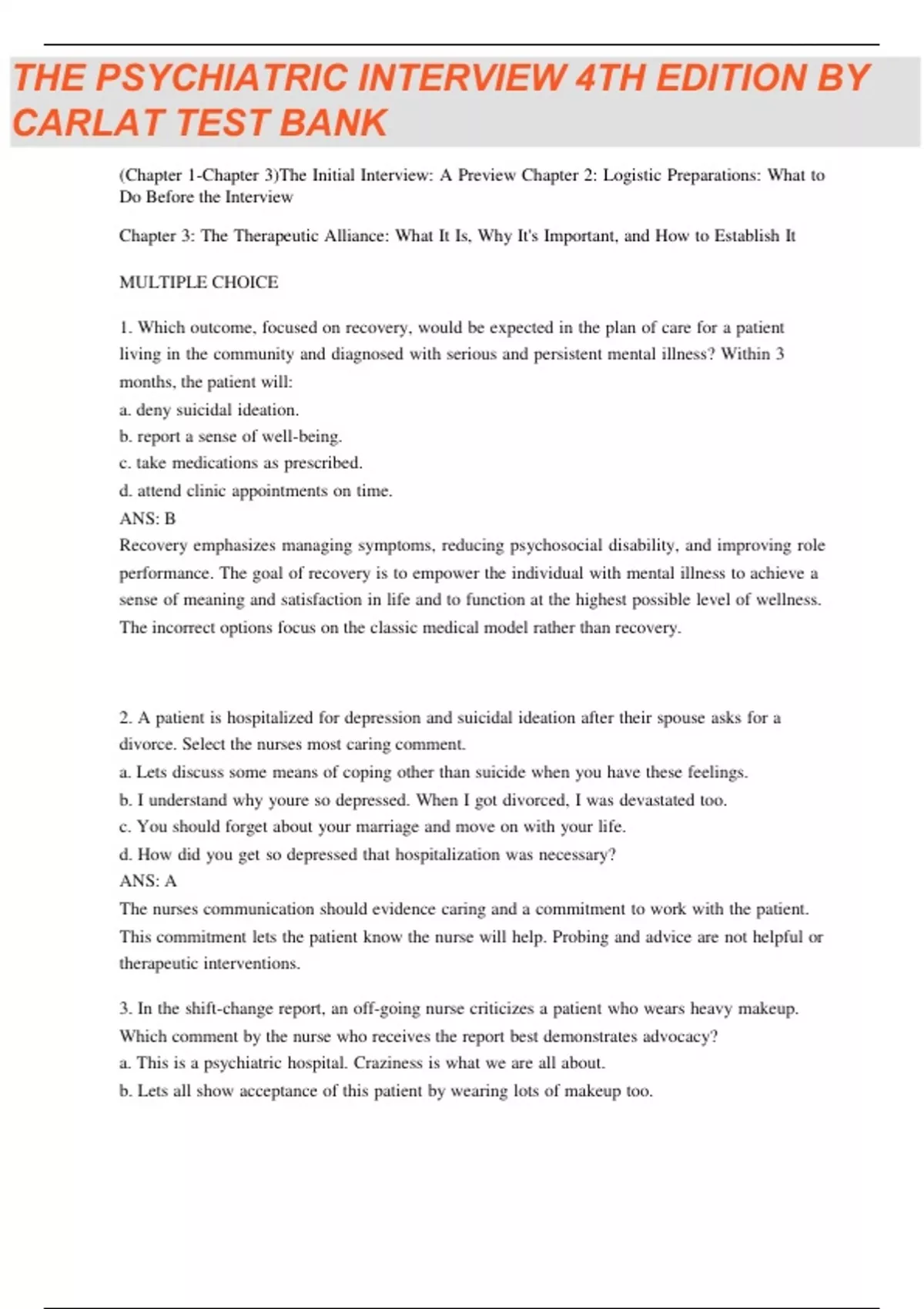 The Psychiatric Interview 4th Edition Carlat Test Bank