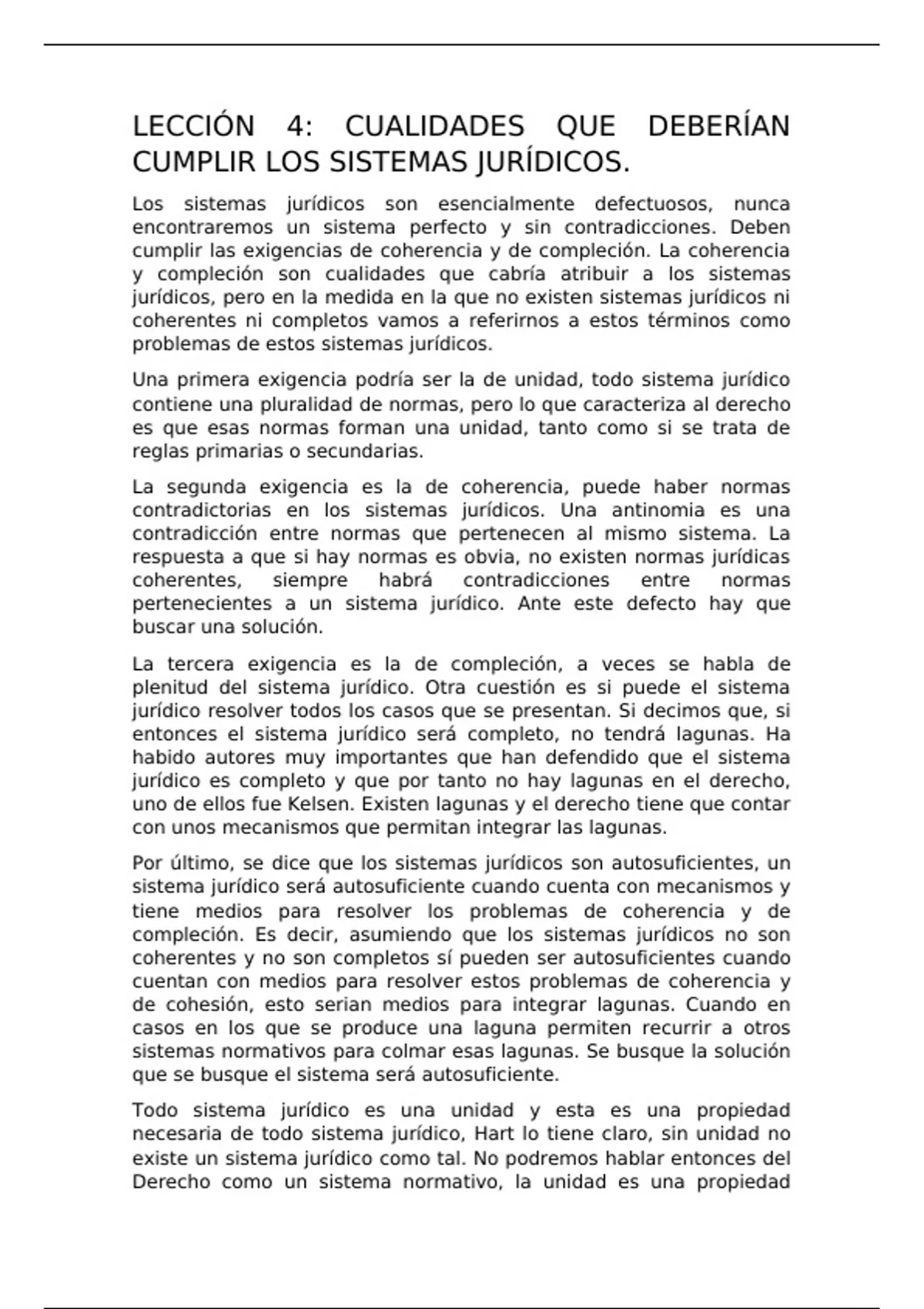 Todo sistema jurídico es una unidad y esta es una propiedad