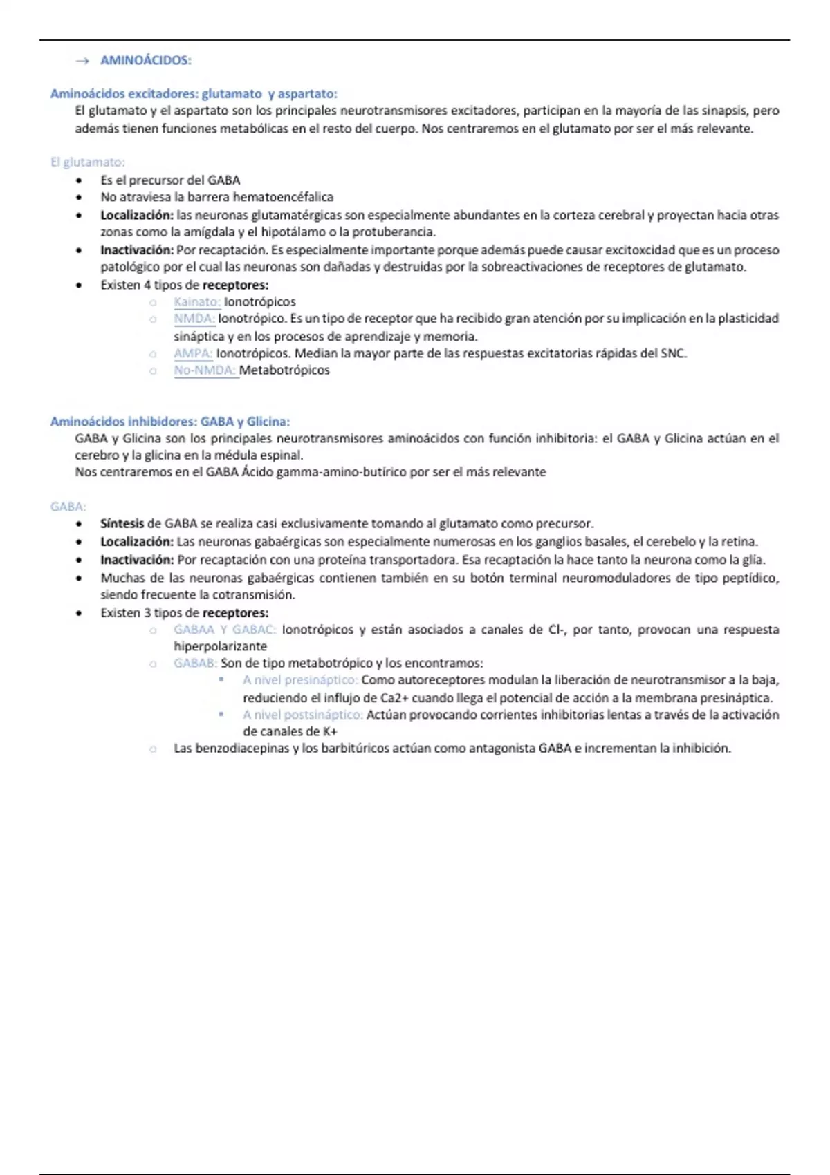 Aminoácidos inhibidores: GABA y Glicina: