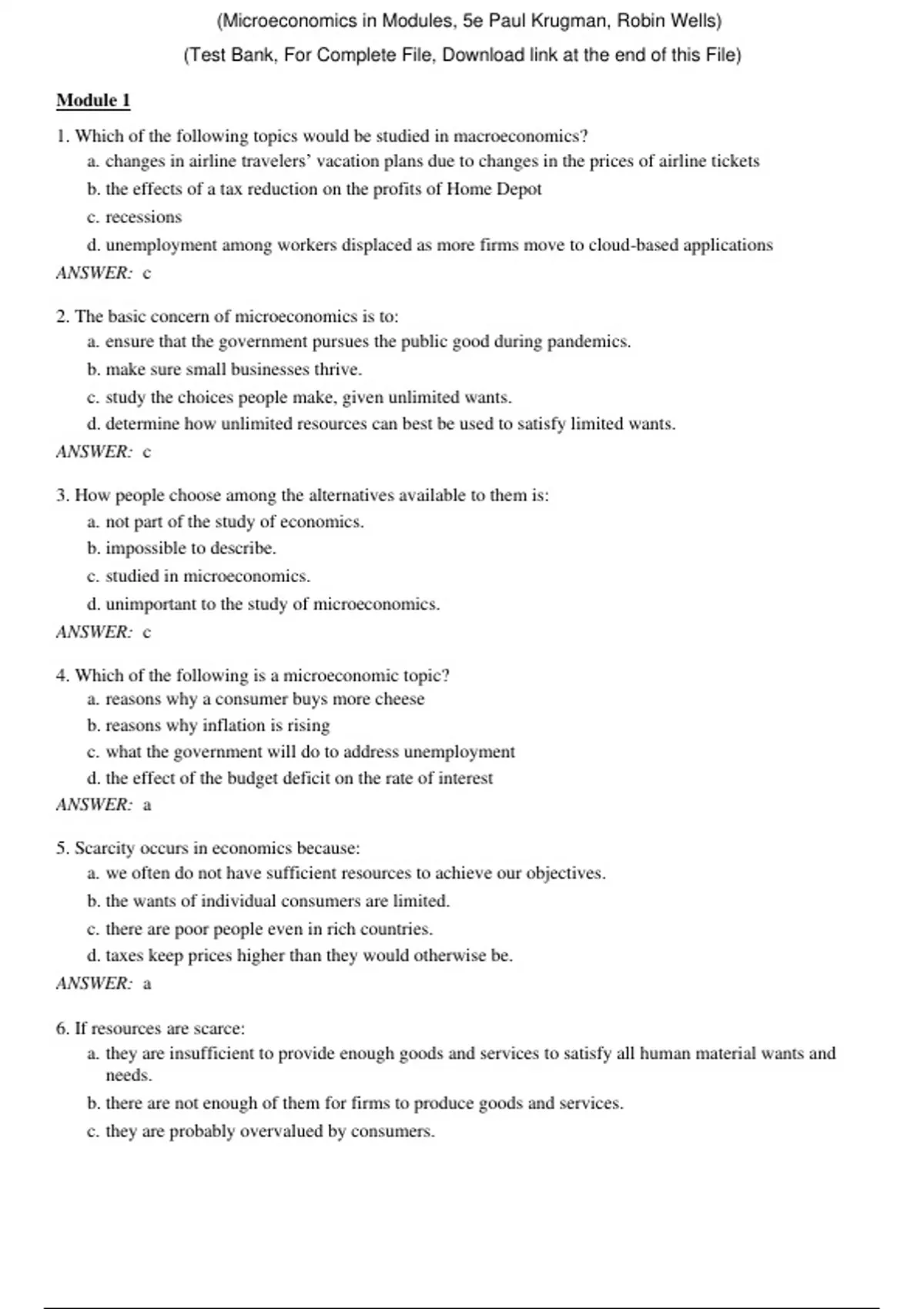 Microeconomics in Modules, 5e Paul Krugman, Robin Wells (Test Bank) Microeconomics in Modules, 5e Paul Krugman, Robin Wells (Test Bank)