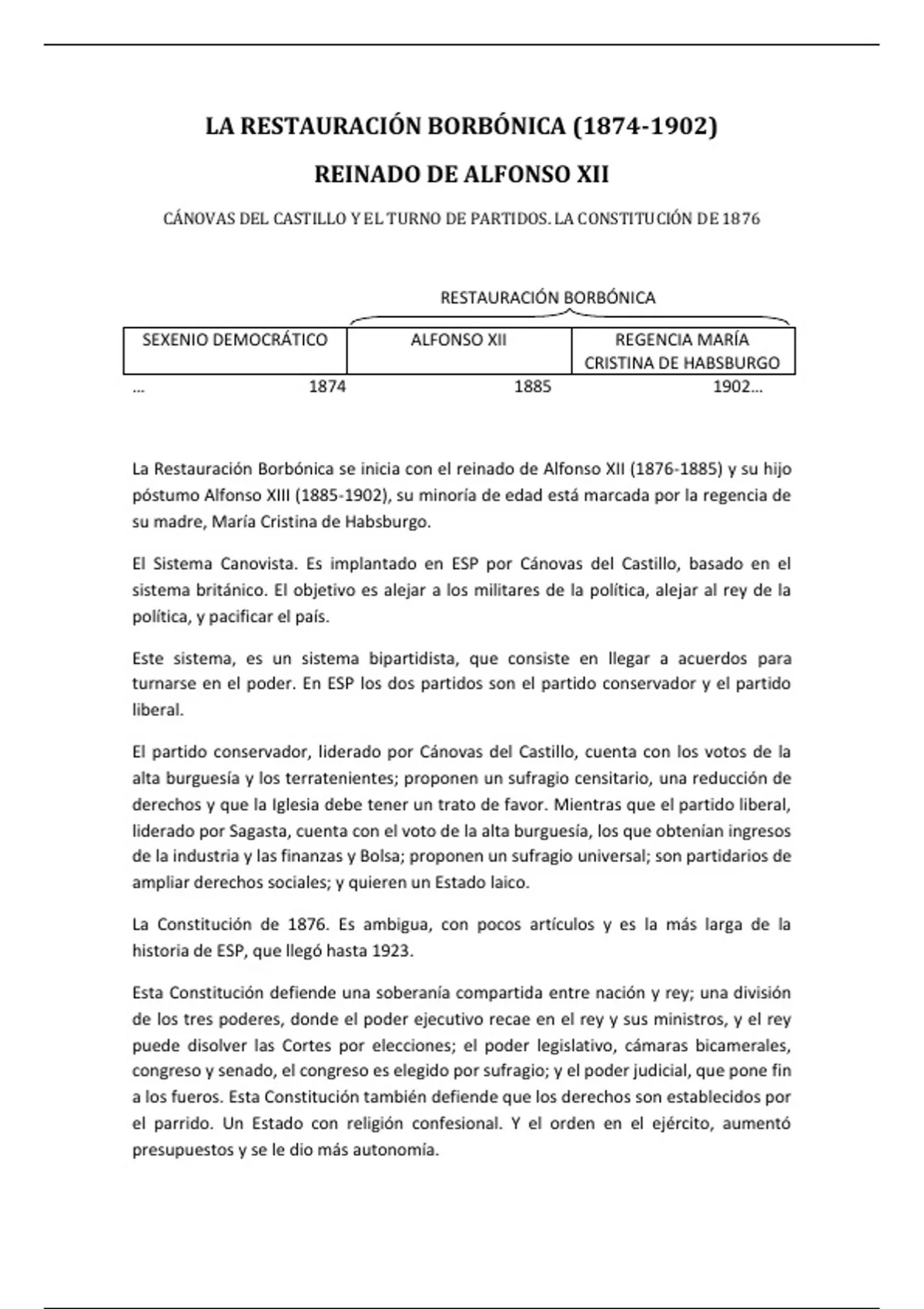 LA RESTAURACIÓN BORBÓNICA (1874-1902)