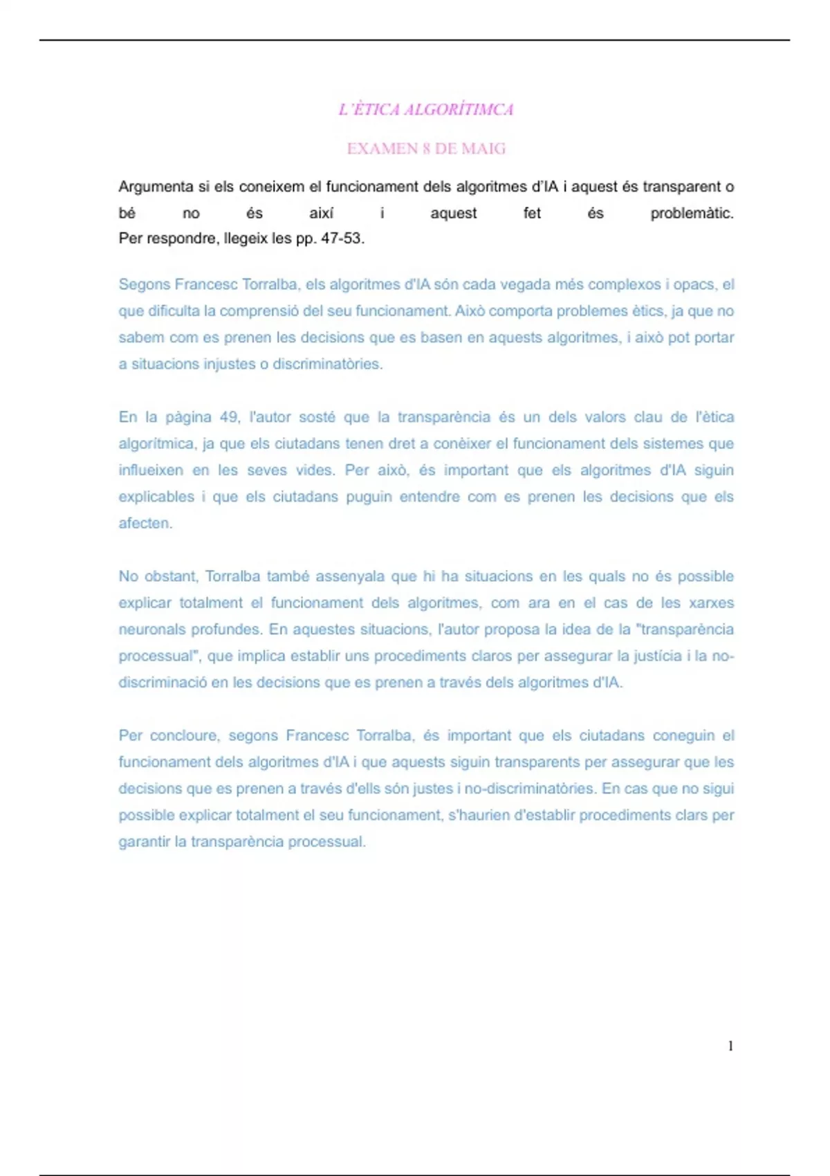 Preguntas y respuestas libro: "Ètica Algorítmica" de Torralba