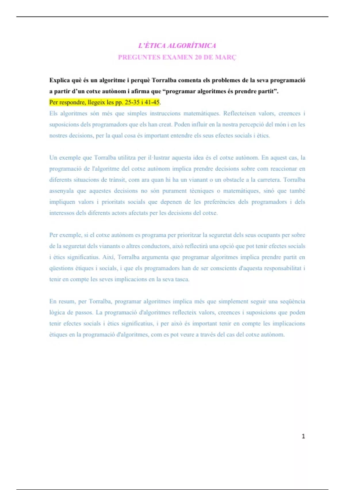 i ètics significatius. Així, Torralba argumenta que programar algoritmes implica prendre partit en