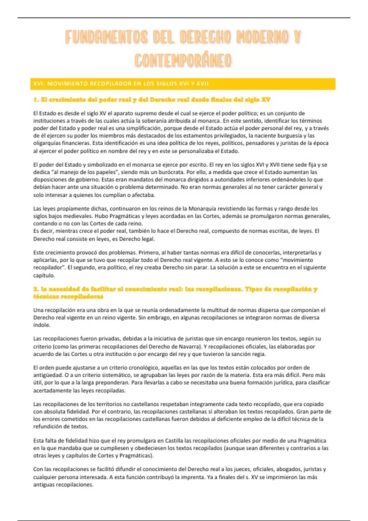 XVI. MOVIMIENTO RECOPILADOR EN LOS SIGLOS XVI Y XVII