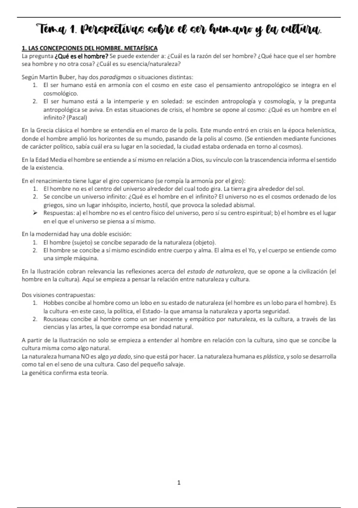 Tema 1. Perspectivas sobre el ser humano y la cultura.