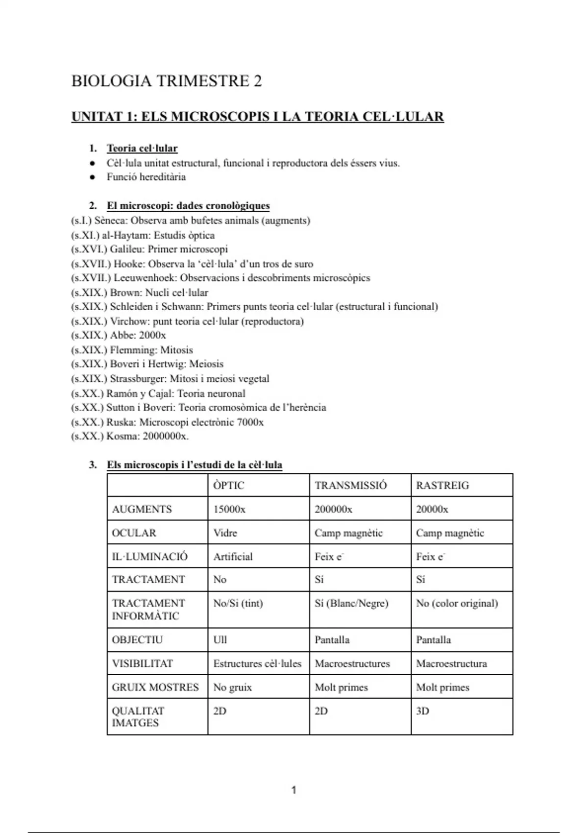 UNITAT 1: ELS MICROSCOPIS I LA TEORIA CEL·LULAR