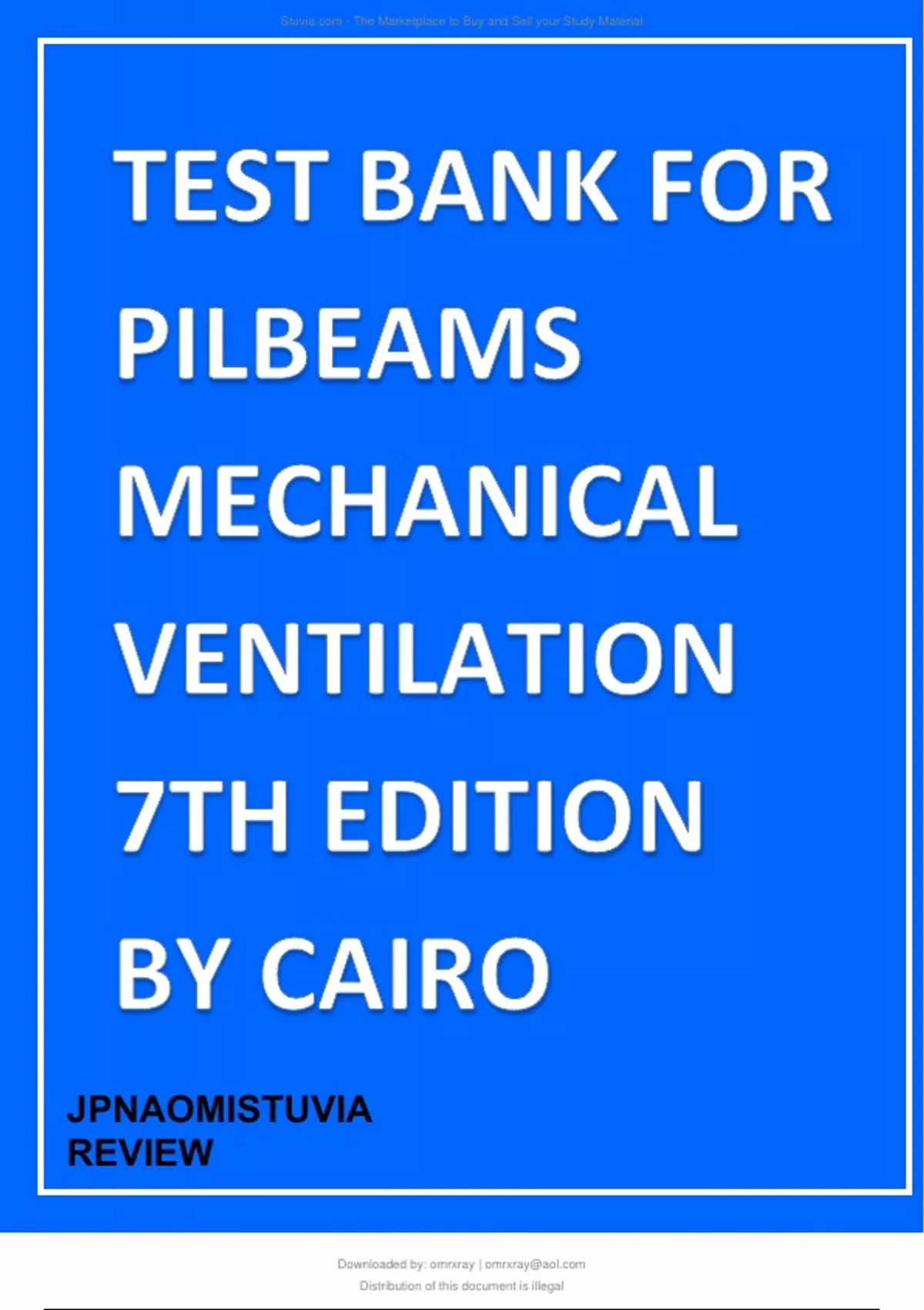 Test Bank for Pilbeam’s Mechanical Ventilation, 6th Edition, J M Cairo.