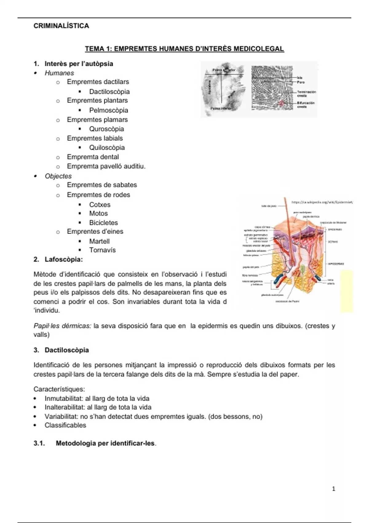 TEMA 1: EMPREMTES HUMANES D’INTERÈS MEDICOLEGAL