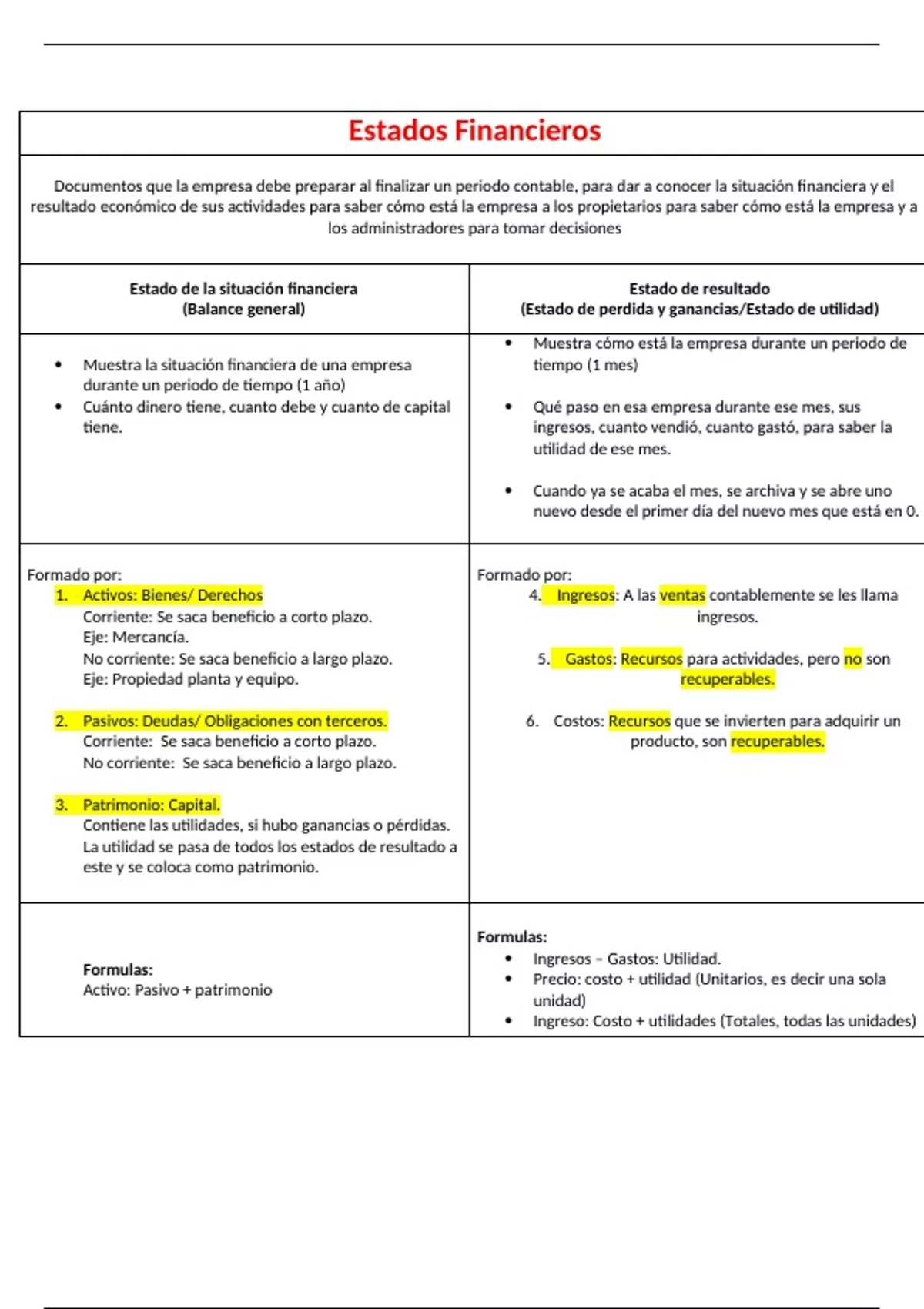 2. Pasivos: Deudas/ Obligaciones con terceros. 6. Costos: Recursos que se invierten para adquirir un