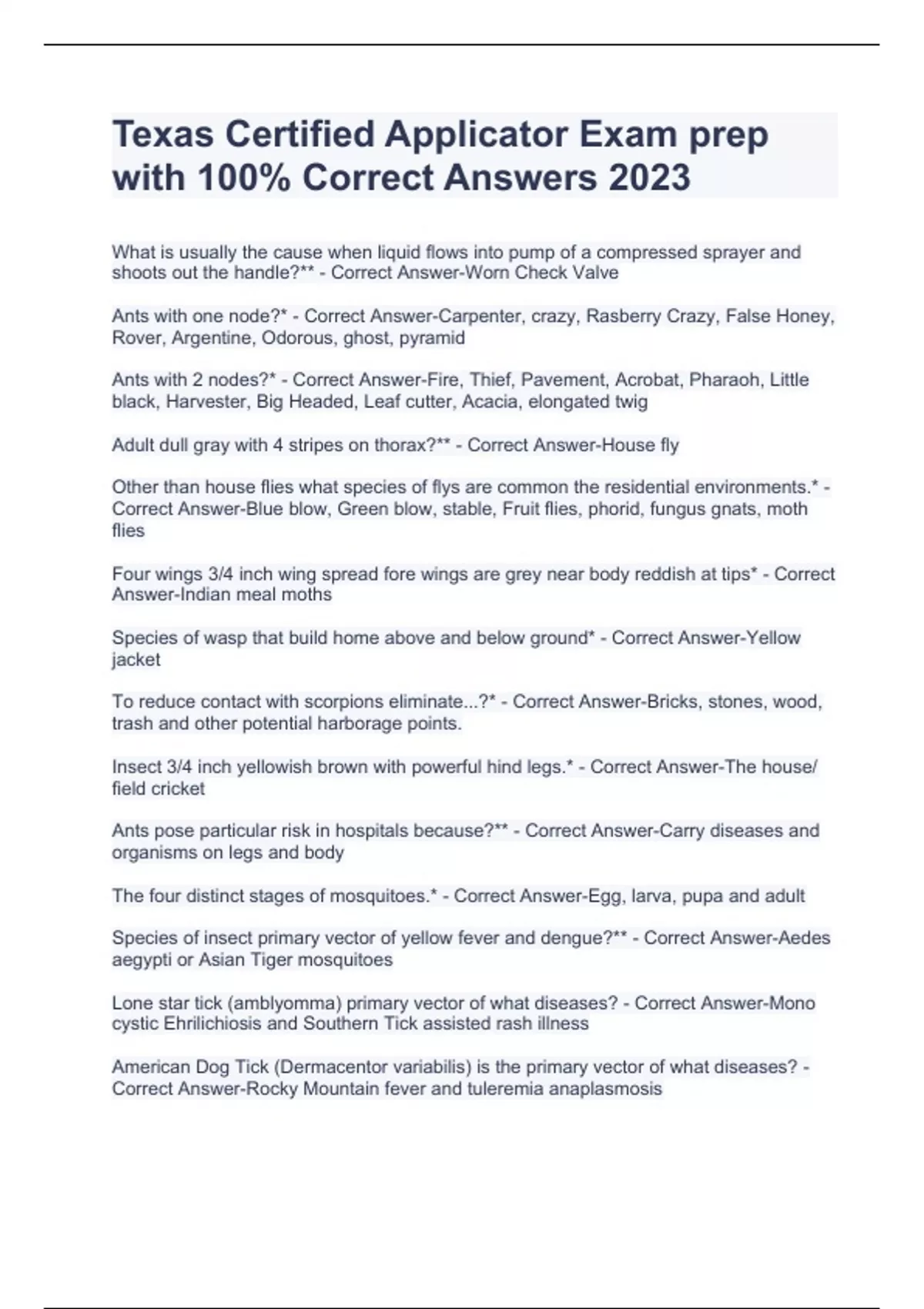 Texas Certified Applicator Exam prep with 100% Correct Answers 2023