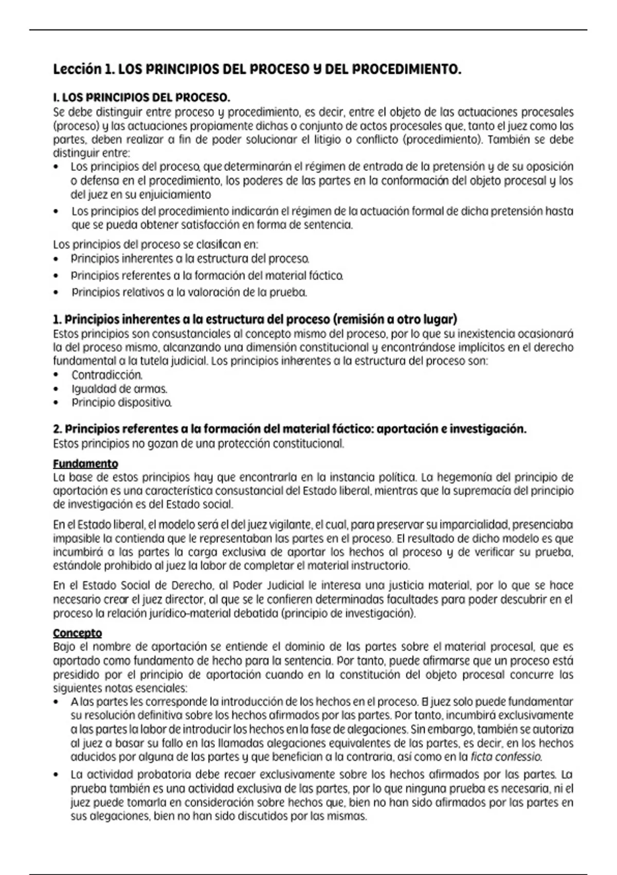 Temario completo de la asignatura de Derecho Procesal I.1 actualizado al curso