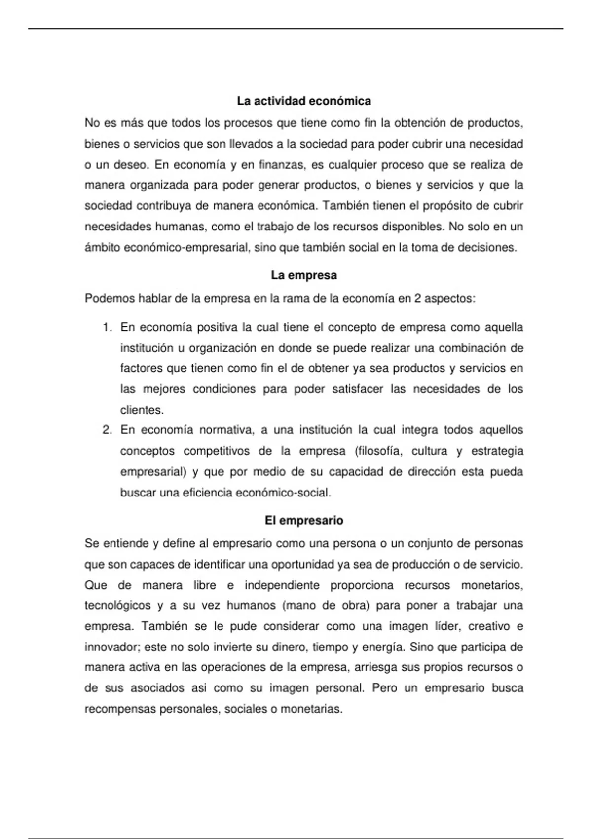 1. En economía positiva la cual tiene el concepto de empresa como aquella