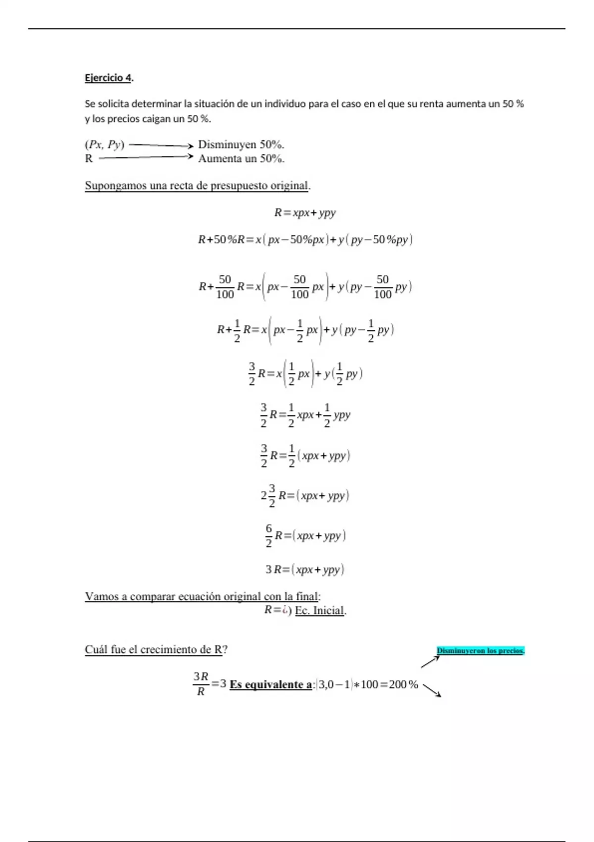 Se solicita determinar la situación de un individuo para el caso en el que su renta aumenta un 50 %
