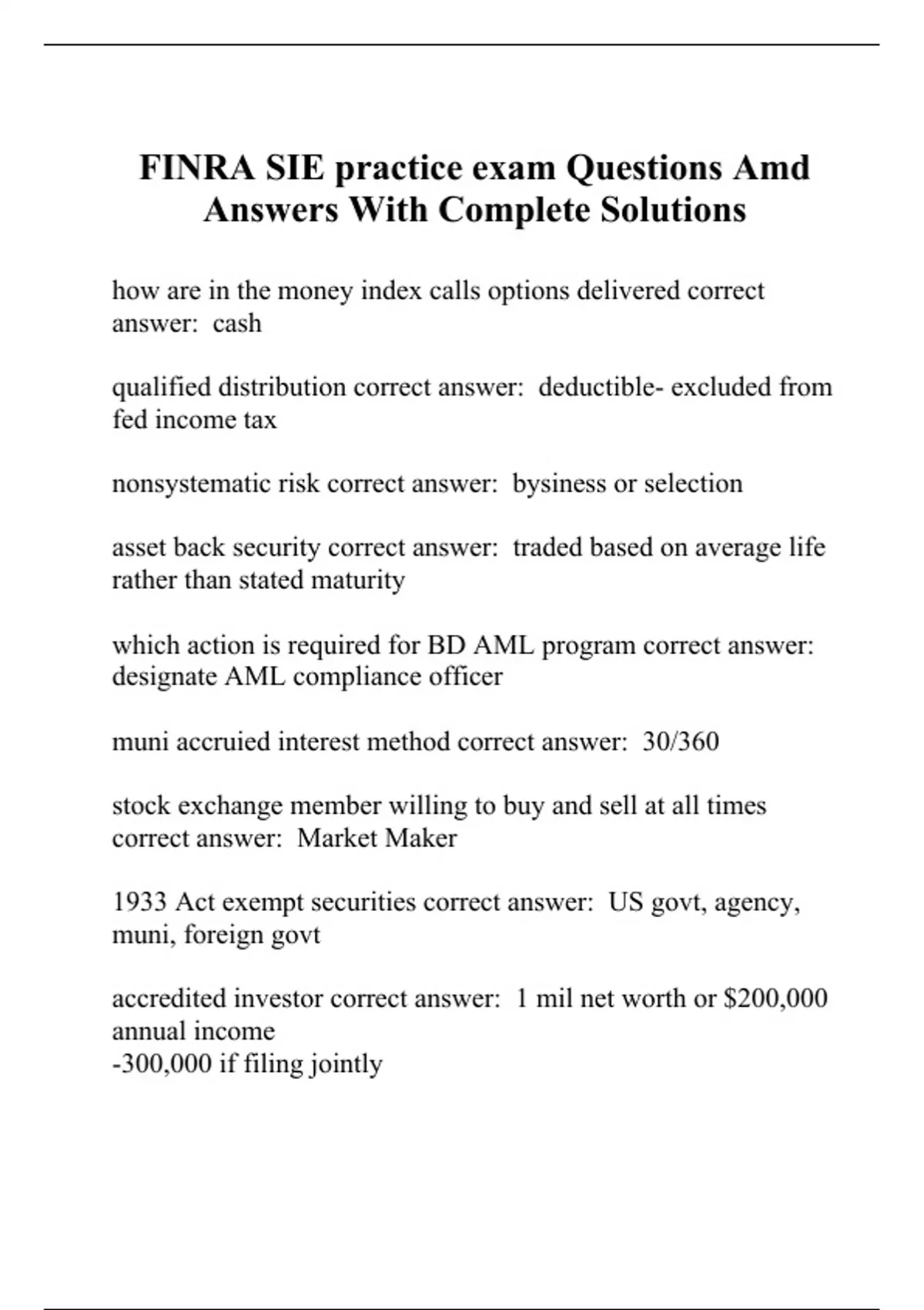 FINRA SIE practice exam Questions Amd Answers With Complete Solutions