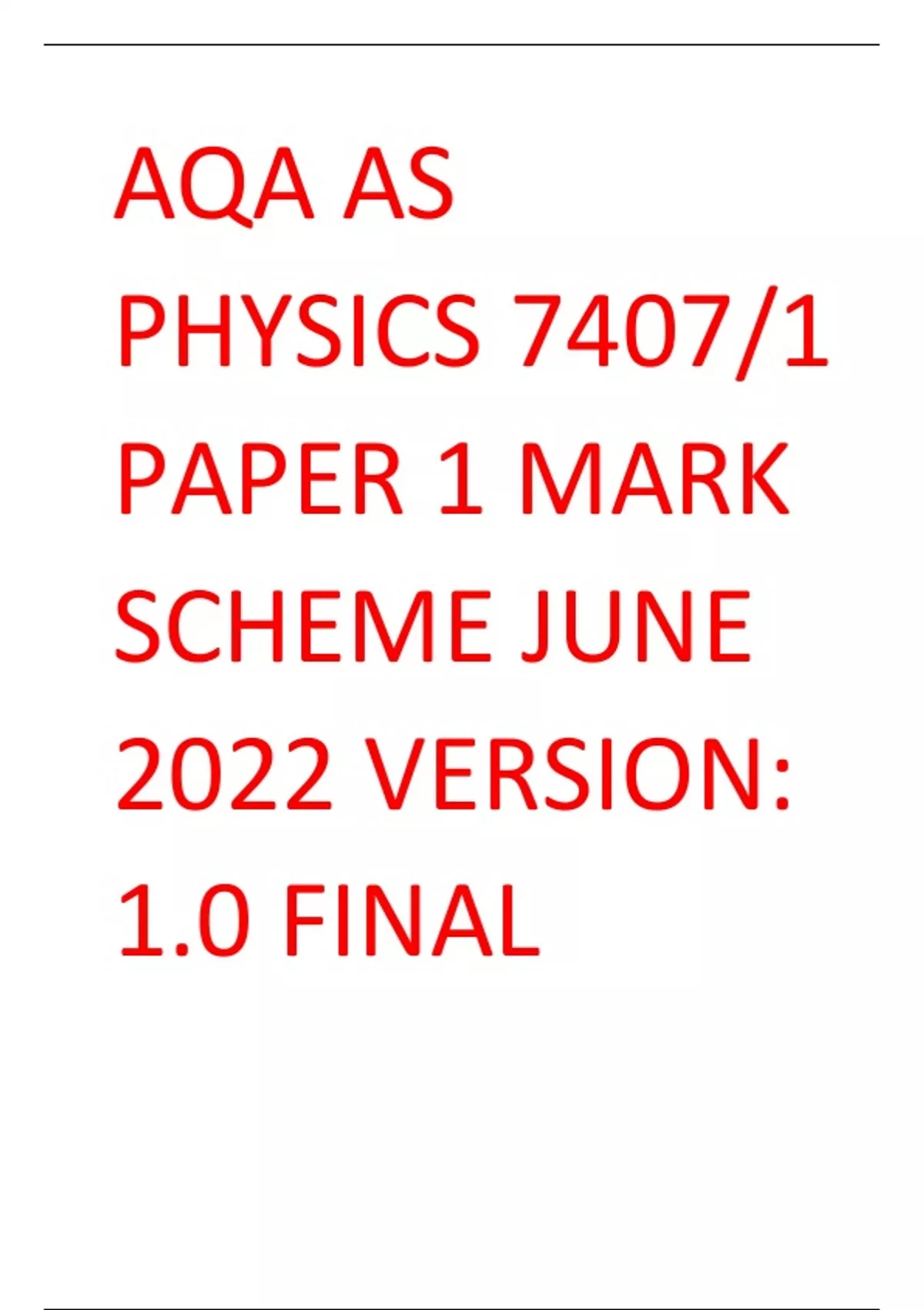 AQA AS PHYSICS 74071 PAPER 1 MARK SCHEME JUNE 2022 VERSION 1.0 FINAL