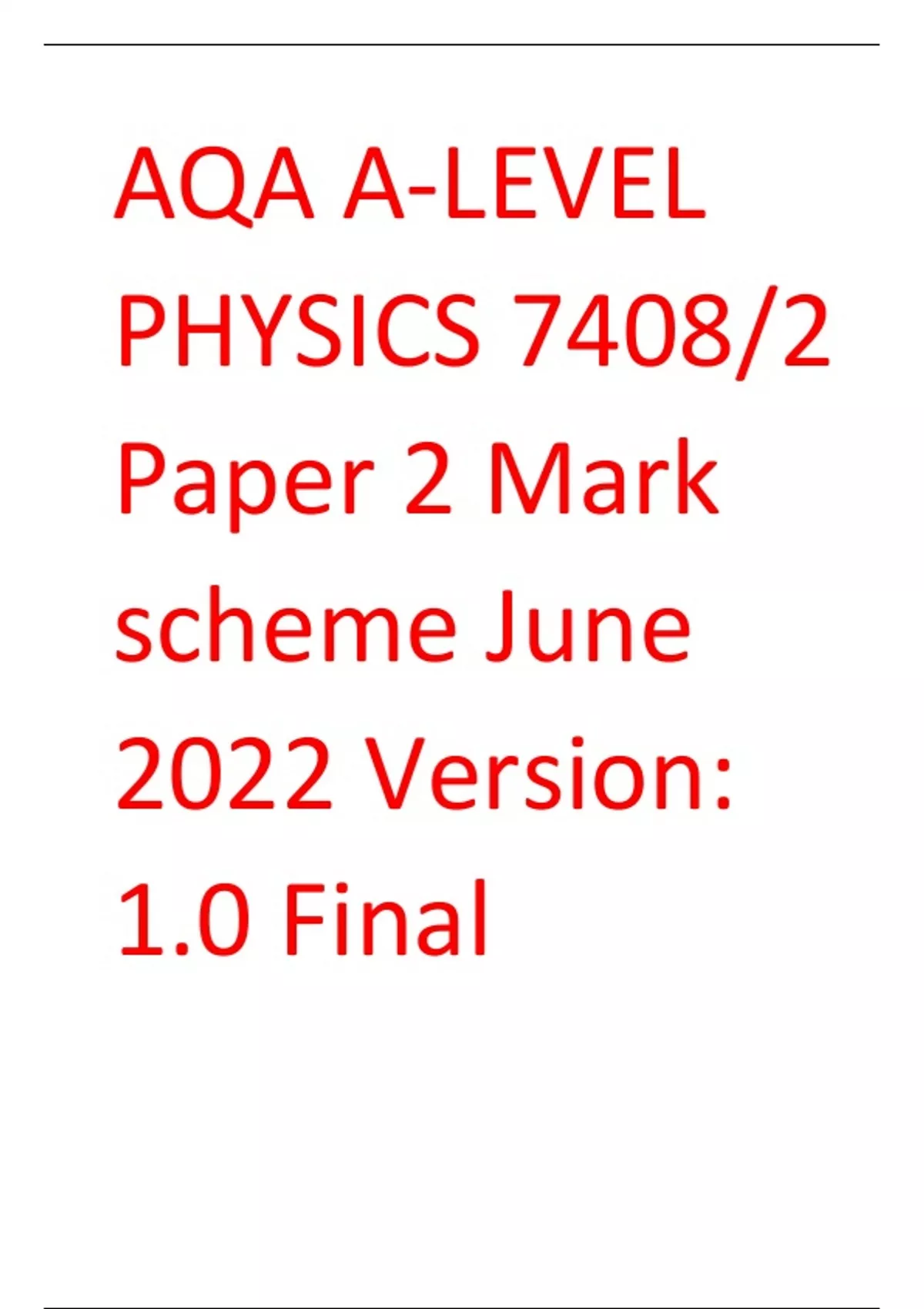 AQA A-LEVEL PHYSICS 74082 Paper 2 Mark scheme June 2022 Version 1.0 Final