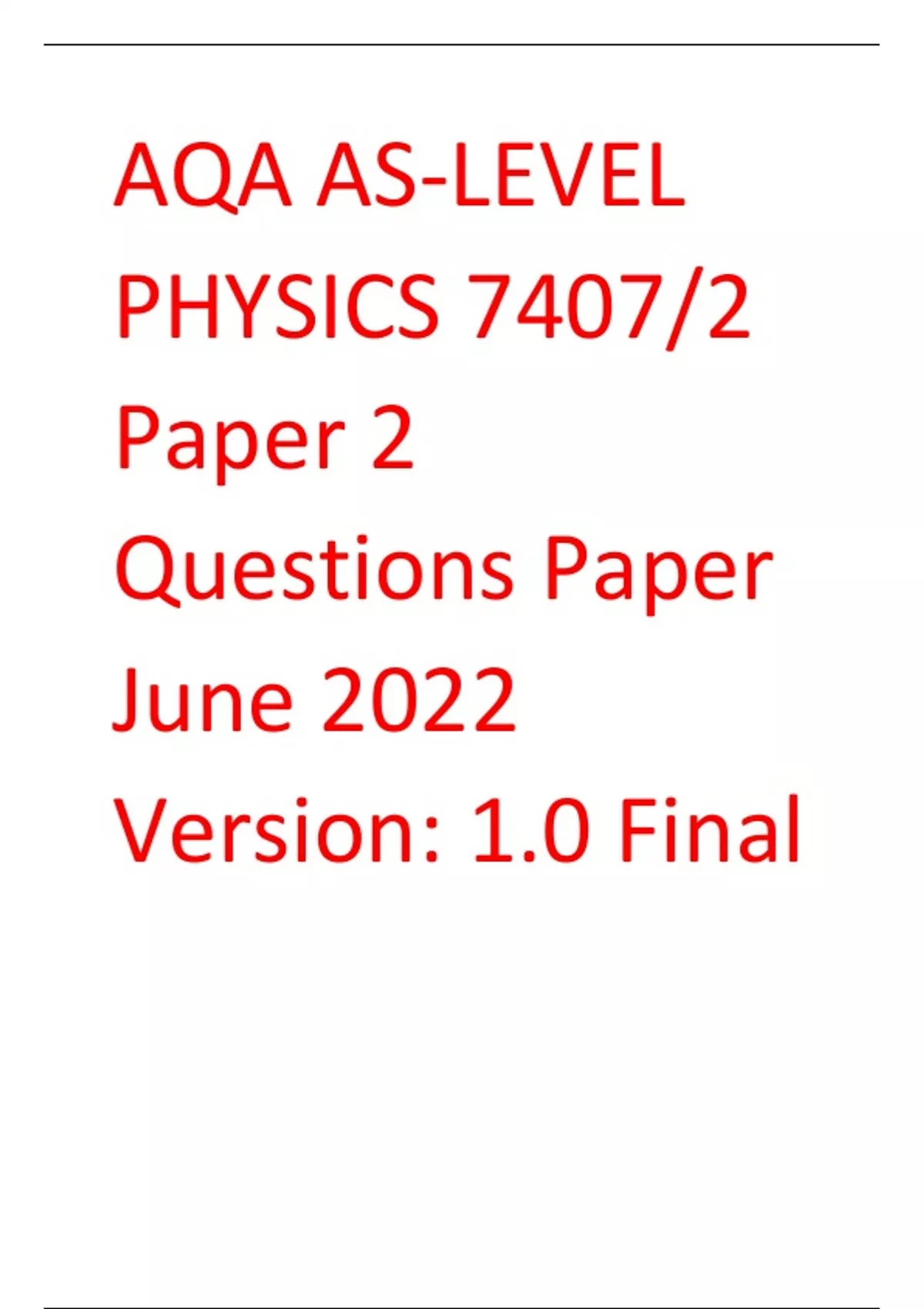 - AQA AS-LEVEL PHYSICS 7407/2