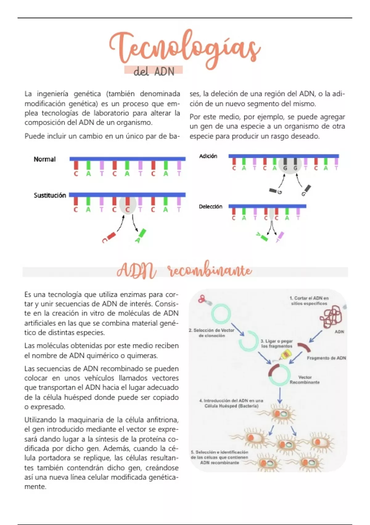 La ingeniería genética (también denominada ses, la deleción de una región del ADN, o la adi-