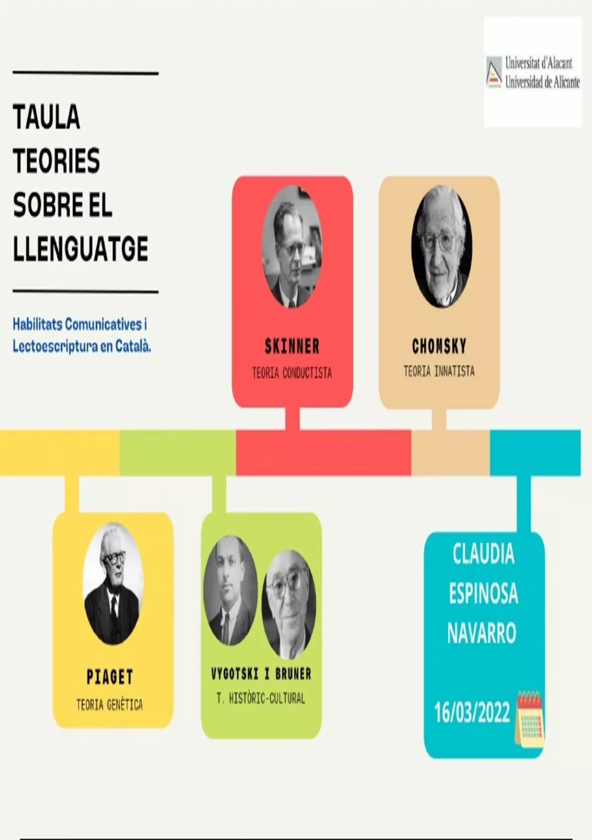 Tabla donde se observan las teorías del lenguaje según los diferentes autores.