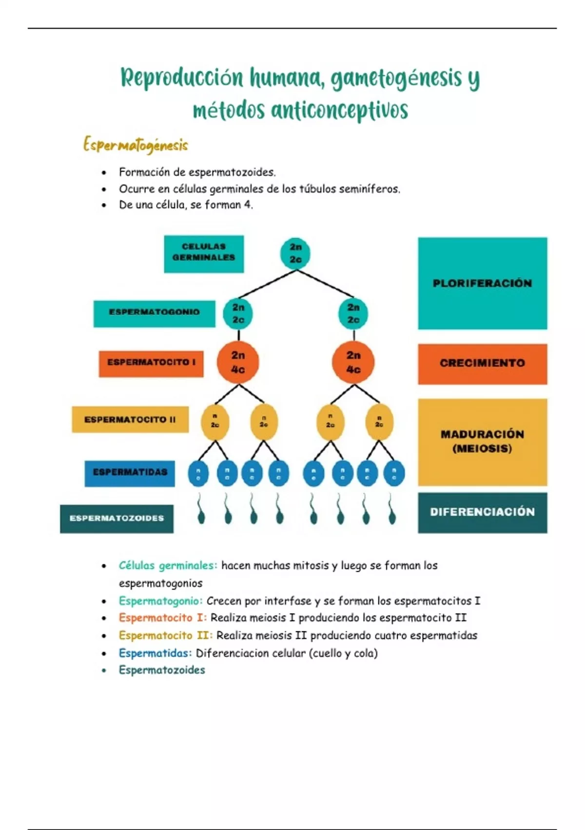 • Formación de espermatozoides.