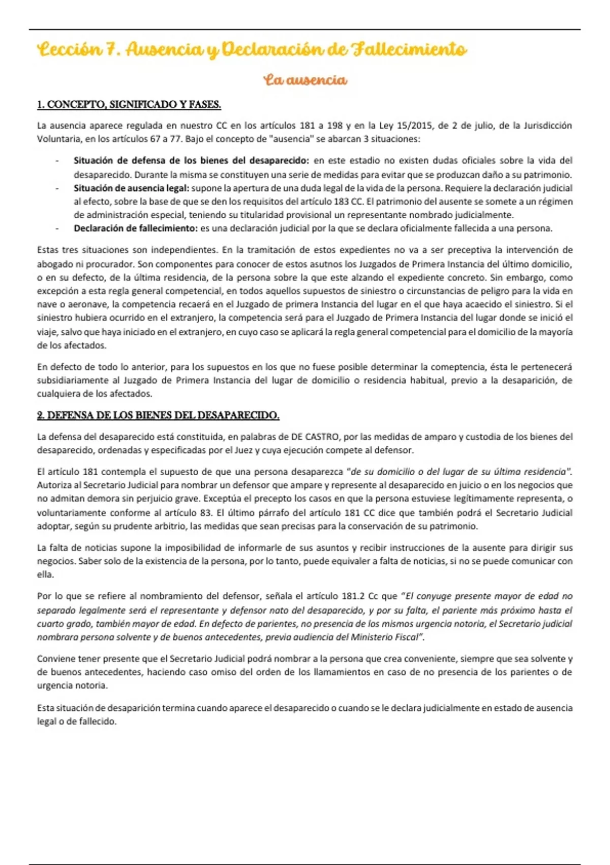 Lección 7. Ausencia y Declaración de Fallecimiento