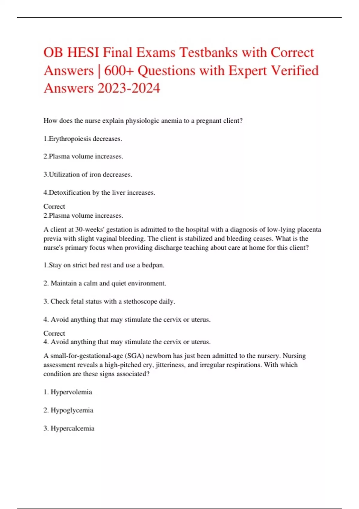 OB HESI Final Exams Testbank with Correct Answers | 600+ Questions with Expert Verified Answers