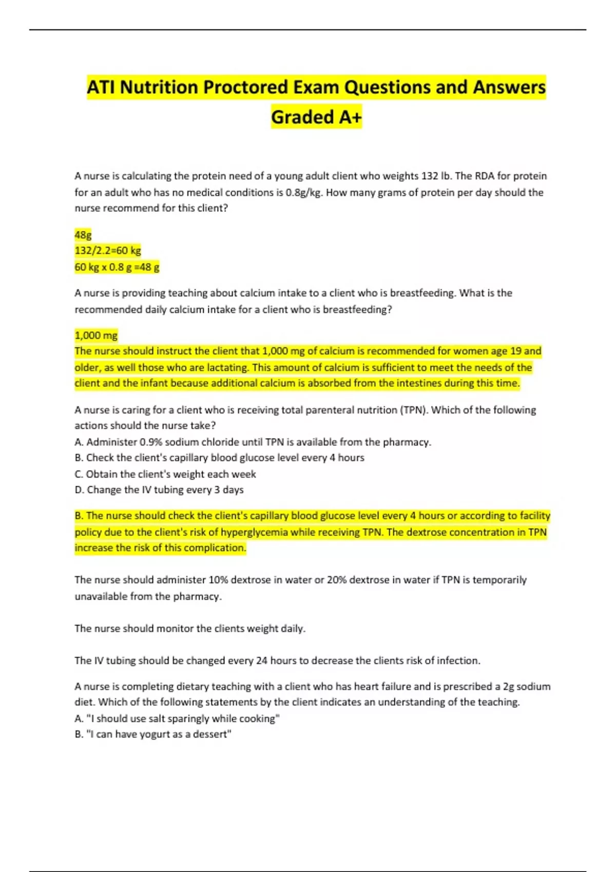 ATI Nutrition Proctored Exam Questions and Answers Graded A+