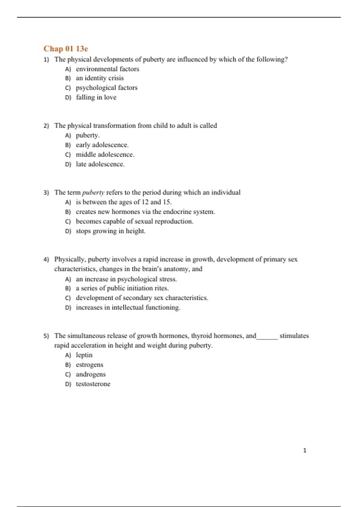 1) The physical developments of puberty are influenced by which of the following?