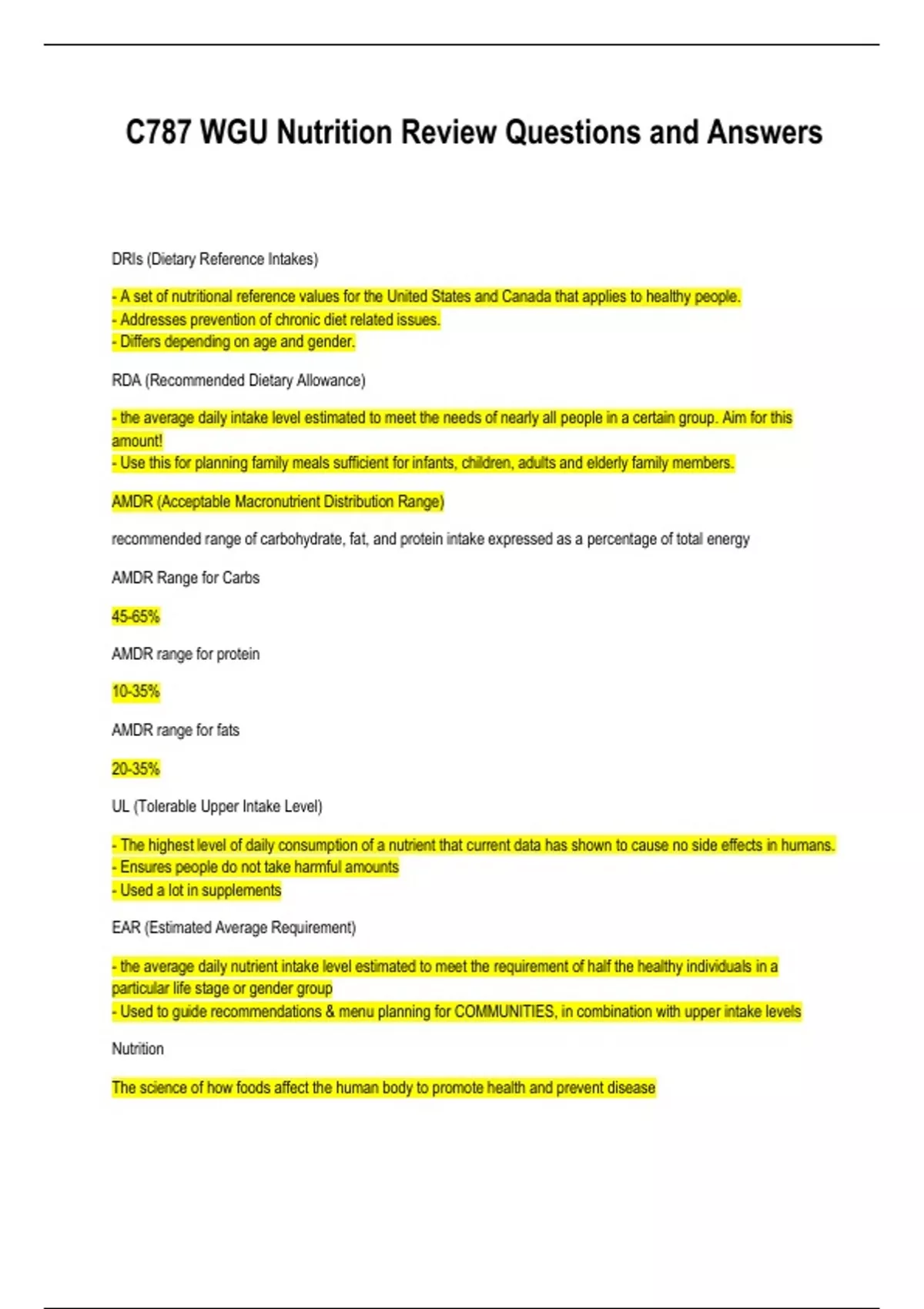 WGU C787 Nutrition Final Exam Review Questions and Answers