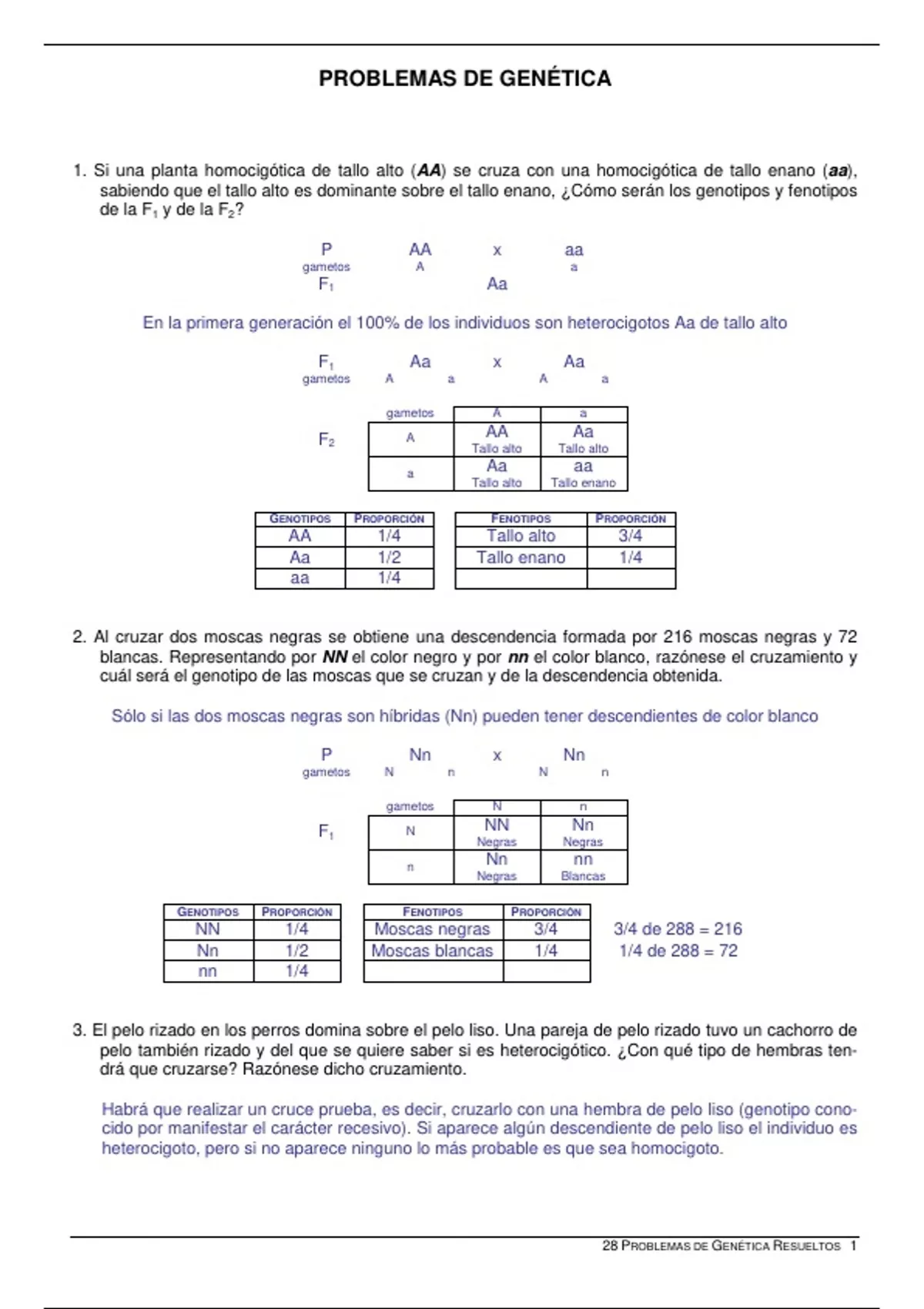 28 PROBLEMAS DE GENÉTICA RESUELTOS 1
