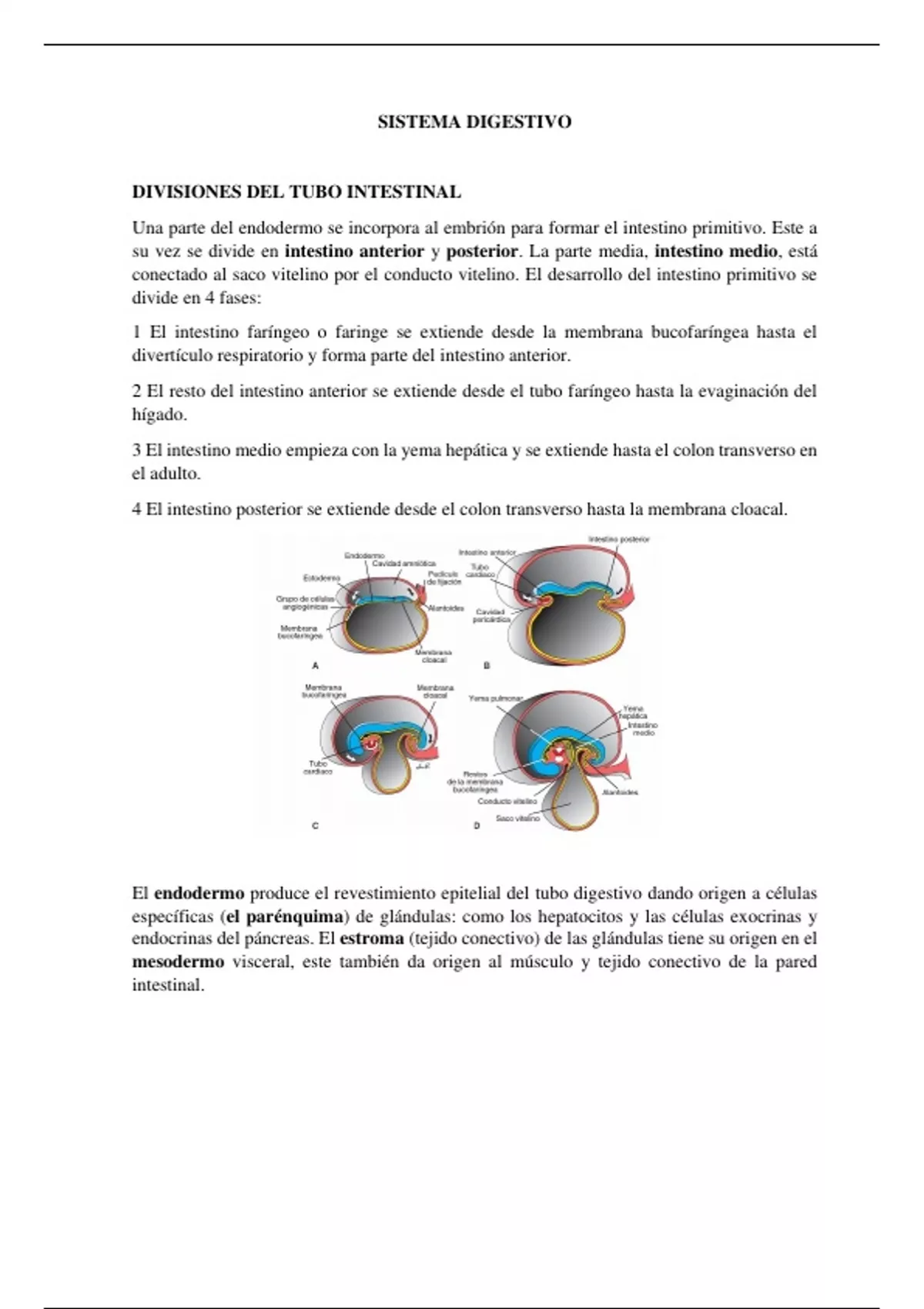 Sumario Embriologia del sistema digestivo resumen
