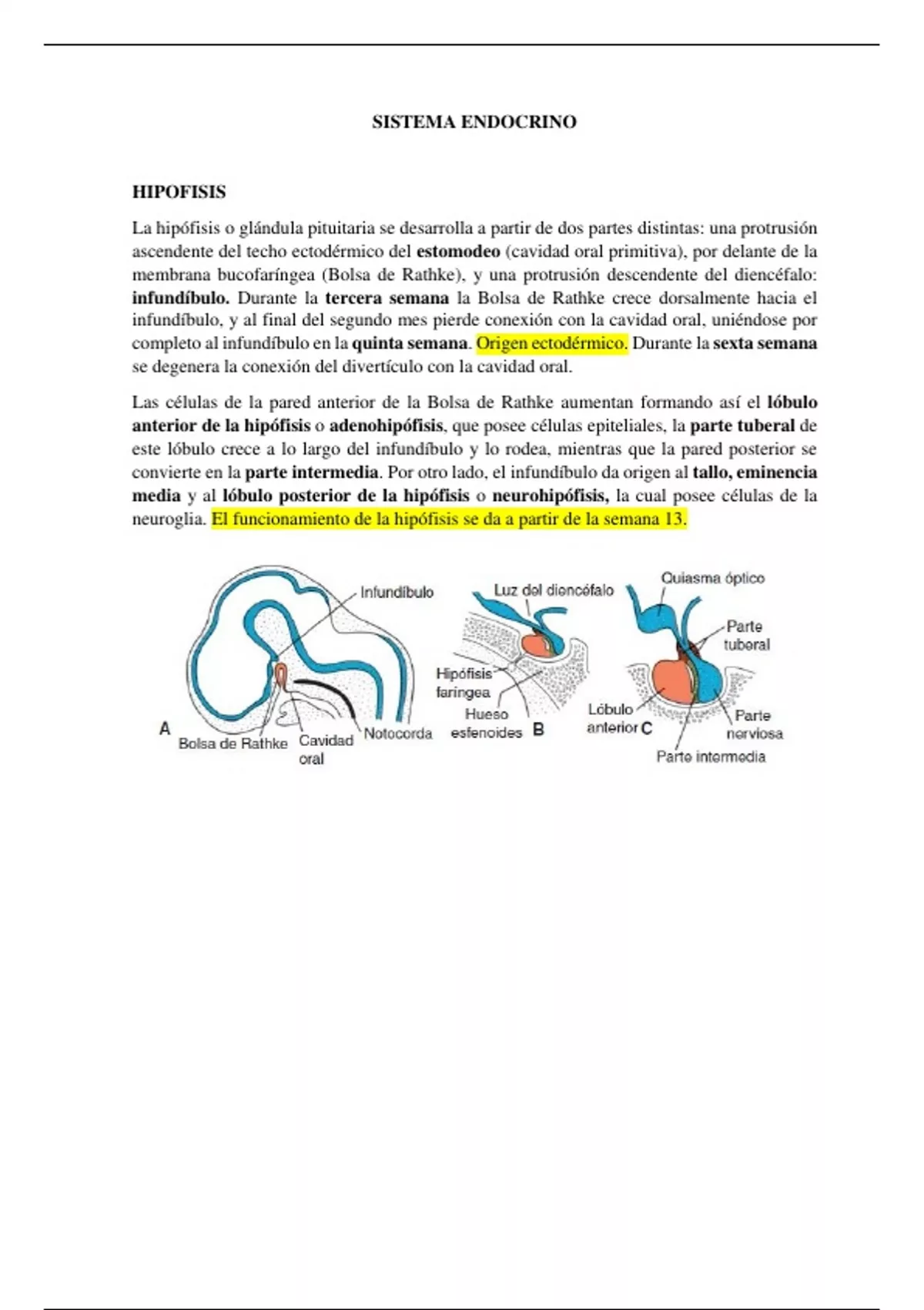 neuroglia. El funcionamiento de la hipófisis se da a partir de la semana 13.