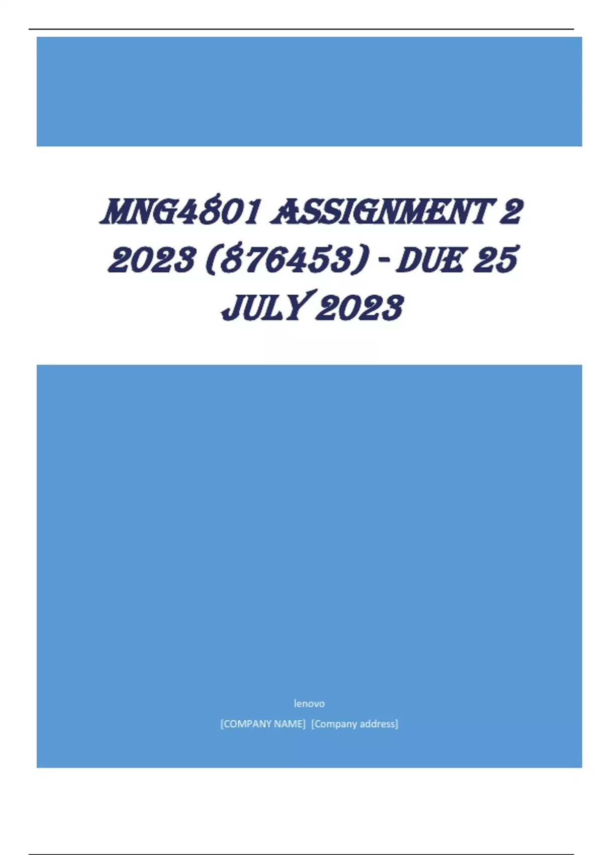 , MNG4801 Assignment 2 2023 (876453) - DUE 25 July 2023